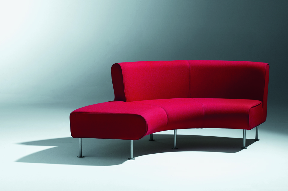 Courbes fluides pour une réception de qualité sur cette banquette cintrée, mixte, avec ou sans dossier.