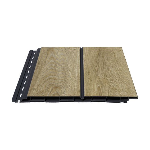 Lame de bardage alvéolaire, pas de 250mm, avec rainure, épaisseur de 15mm, plaxage 1 face, 6 films esthétique bois disponibles (TOM, TEA, SOC, TRU, HON et AMA), disponible sur base blanche ou anthracite