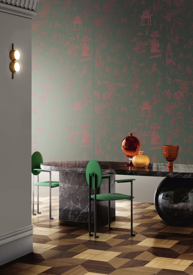 Des salles de bal, des résidences ottomanes aux sols polis, des gentlemen’s clubs londoniens exclusifs. Ton est un carré en bois composé d’incrustations de chêne. Il présente des couleurs chaudes et lumineuses, qui mettent en valeur le grain naturel du bois et son essence. Un module géométrique, de nombreux motifs de pose comme des échos d’une haute société distinguée par les règles du Ton.