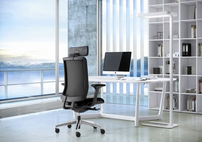 Elégance, fluidité et confort caractérisent la version Direction de la gamme Wi-MAX. Cette collection unique proposée en finition noire ou blanche s’adaptera naturellement à tous les styles décoratifs. Le dossier se distingue par un remarquable travail de coutures sur le cuir en partie avant et une finition microperforée assortie en partie arrière. Les manchettes des accoudoirs fixes de cette version sont également tapissées en cuir.