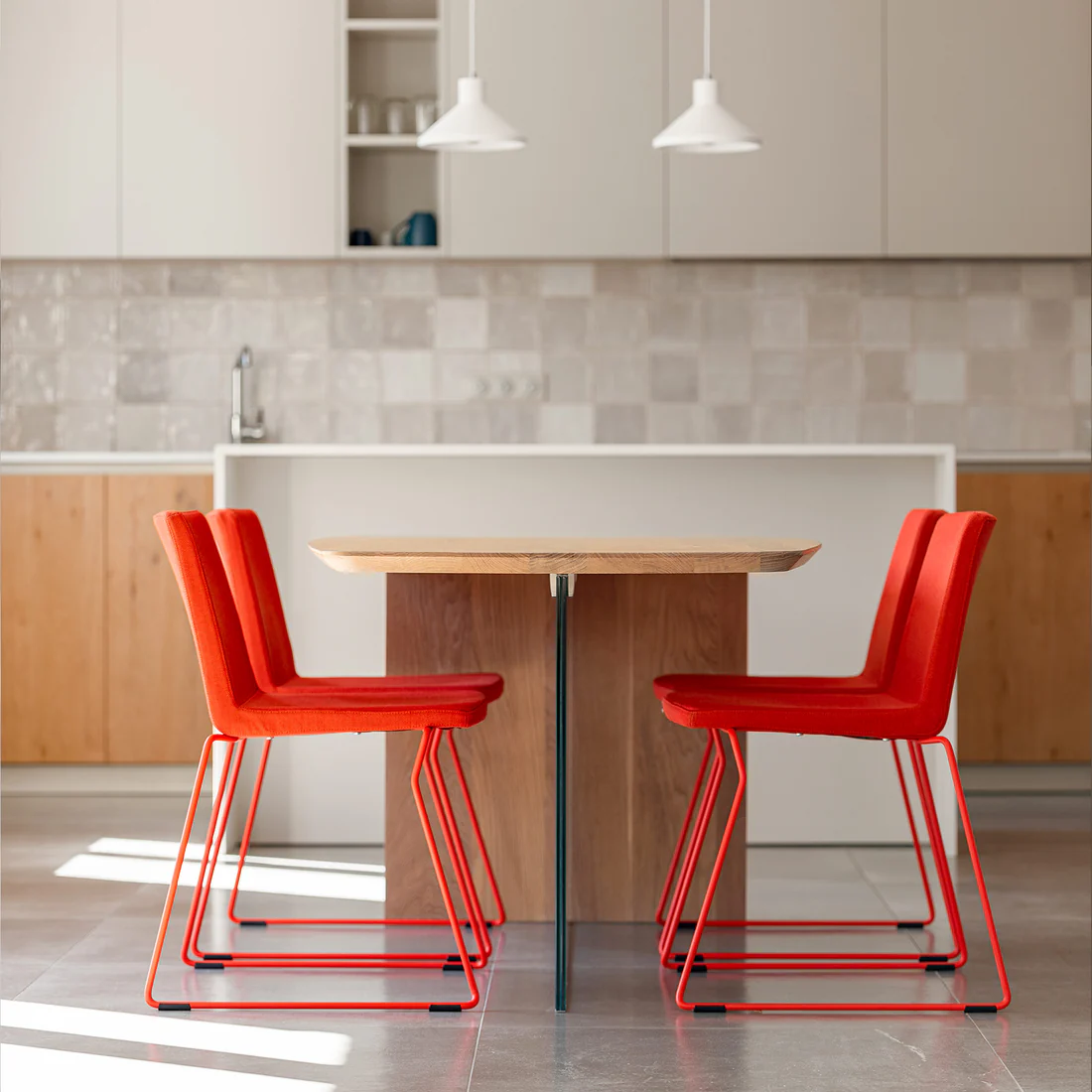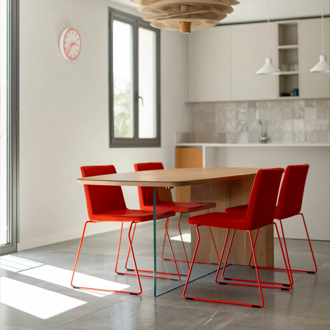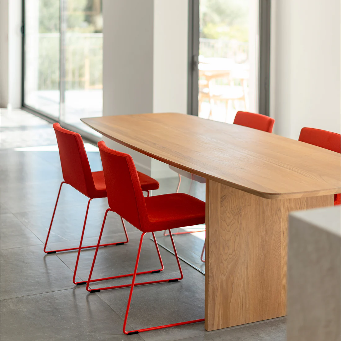 Notre table Ulysse, inspirée par la forme aérienne d’une aile d’avion, incarne une élégance sans effort.