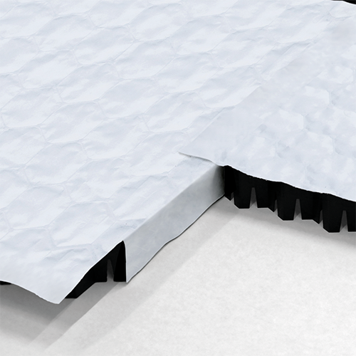 Sous forme de plaque, il est composé d'une structure alvéolaire ultralégère, fabriquée à partir de polupropylène recyclé, intégrant un géotextile en microfilaments thermosoudés sur sa partie supérieure.