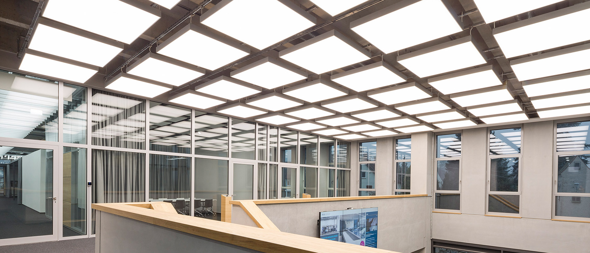 Norea-Sky combine le désir de solutions d’éclairage à grande échelle avec des équipements LED de haute qualité et efficaces et une installation facile, de la même manière qu’un luminaire suspendu compact ou apparent – et ce dans la gamme standard. Pour faciliter l’installation et l’entretien, la membrane textile peut être remplacée sans outils.