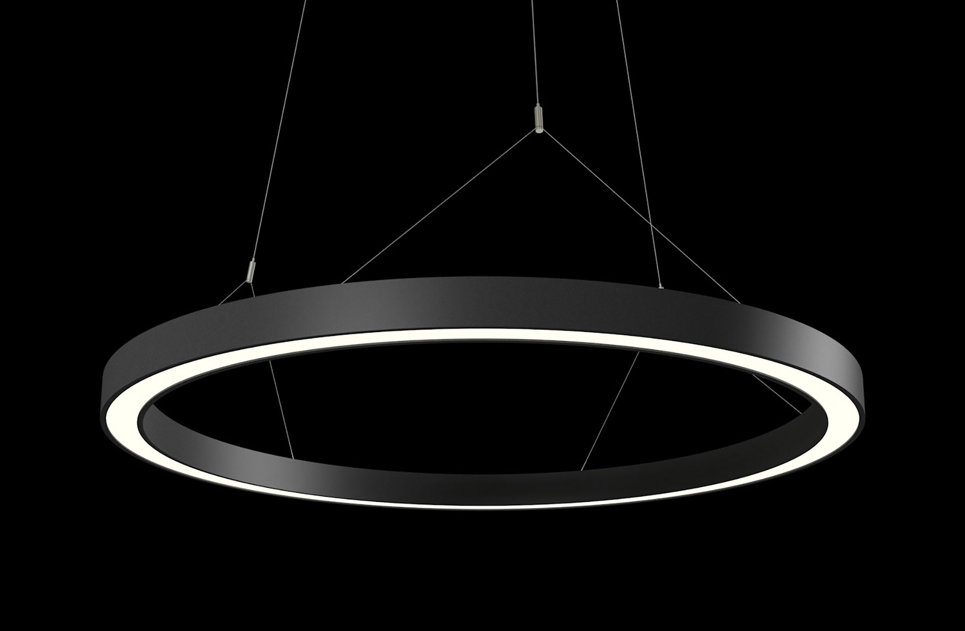 La structure du profilé Stora permet une flexion dans les deux sens, de sorte que non seulement des luminaires ronds plats, mais aussi des systèmes en forme d’anneau. Les anneaux Stora-K sont fabriqués d’une seule pièce, il n’y a donc qu’un seul joint bout à bout. Les éclairs de lumière au niveau des joints des couvercles sont évités grâce au fraisage étagé dans les vitres opales. Disponible à partir de début 2020 dans les diamètres de 650, 950, 1200 et 1500 mm.