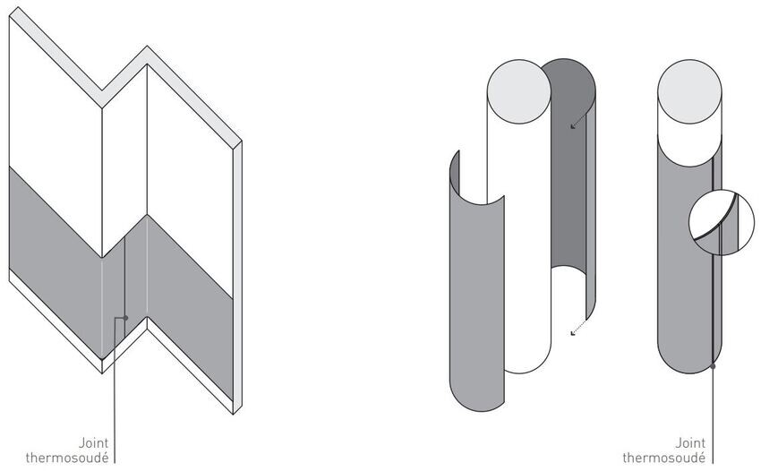La fixation est par encollage avec la colle acrylique SPM, le mastic-colle universel SPM, ou la colle MS polymère. Les joints entre panneaux peuvent être réalisés avec un joint thermosoudé ou avec un joint silicone de couleur coordonnée aux panneaux.