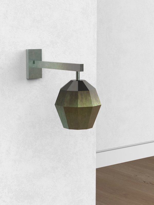 Applique à facettes en laiton patiné. Délais de fabrication : 3 semaines L’installation électrique de nos luminaires n’est pas comprise.