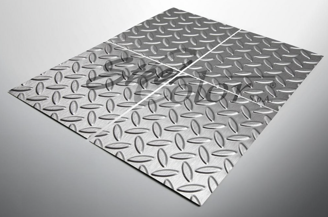 Le produit Mandorlato Satinato du fabicant STEEL COLOR a une épaisseur de 0.6 mm, une longueur de 2250 mm, une largeur de 1250 mm,