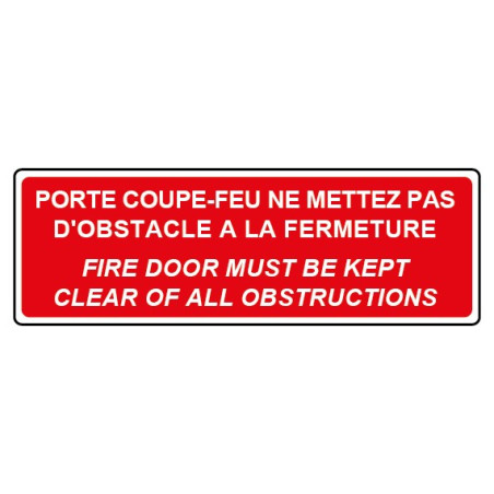 Le produit Panneau Porte Coupe-Feu Ne mettez pas d'obstacle a la fermeture Anglais/Français de STOCKSIGNES existe dans les coloris : Rouge Blanc .