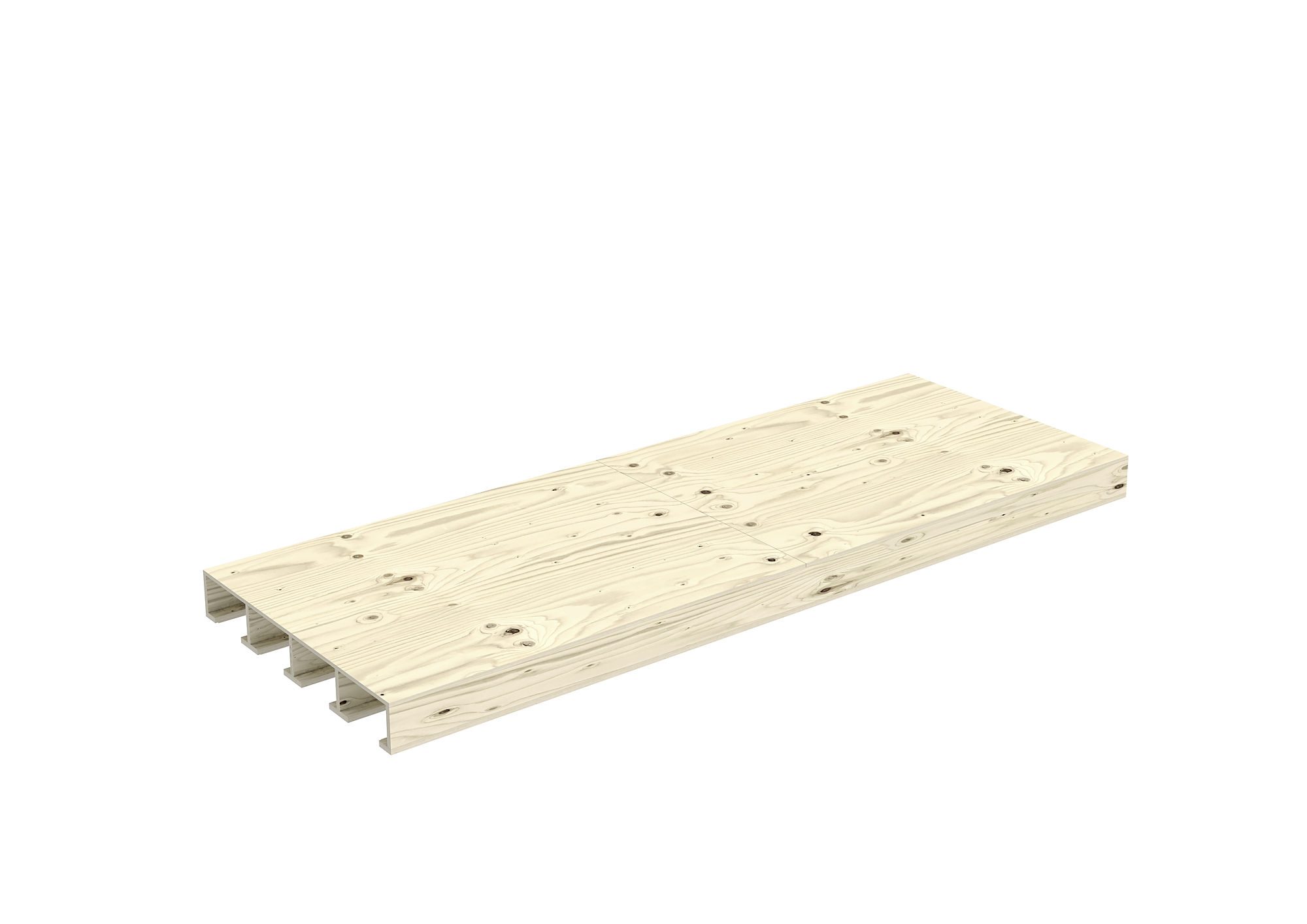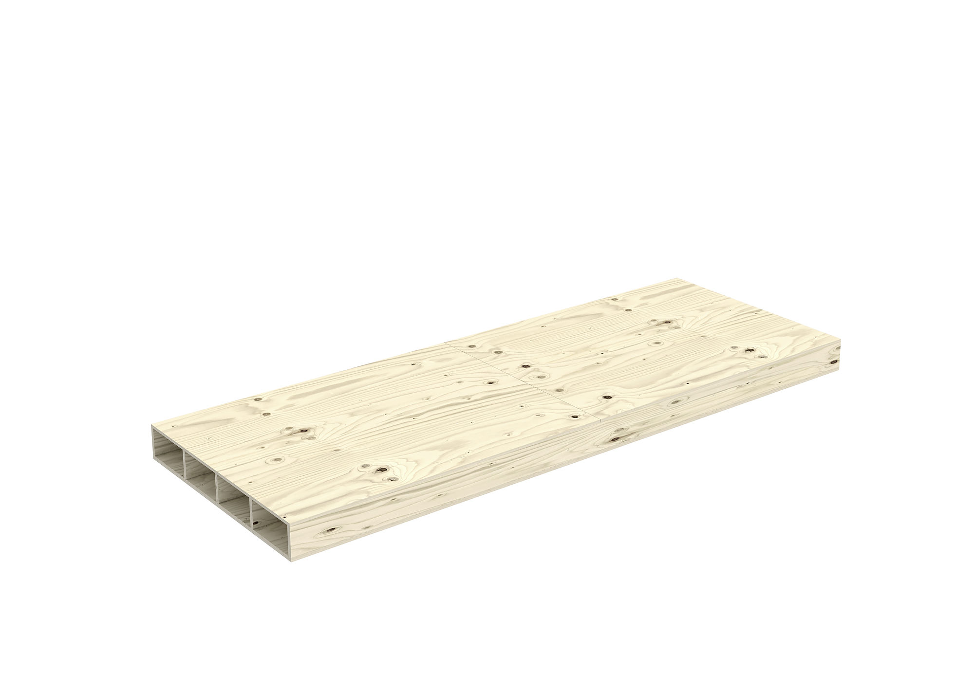 Les caissons nervurés sont des produits en bois massifs qui peuvent être utilisés pour les sols et les toits à longue portée, nécessitant une capacité portante élevée et un faible poids propre. Stora Enso propose deux types de caissons nervurés, fabriqués en CLT combiné avec du GLT, ou en LVL.