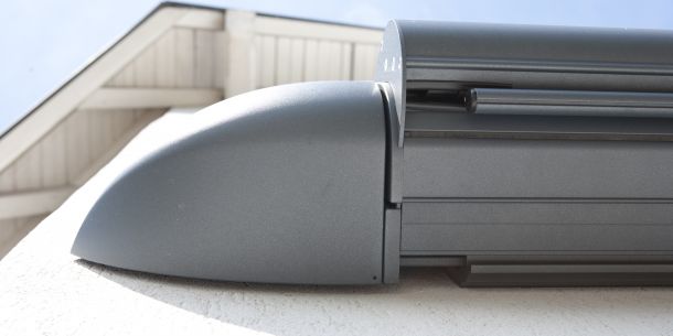 Le store coffre ON’X se distingue par ses dimensions généreuses. En témoignent des bras renforcés permettant une avancée jusqu’à 4 mètres et une largeur jusqu’à 7 mètres. ON’X est disponible en deux bras ou en trois bras selon les dimensions. ON’X est équipé de 2 joues latérales design permettant au store de se fondre totalement dans la façade.
