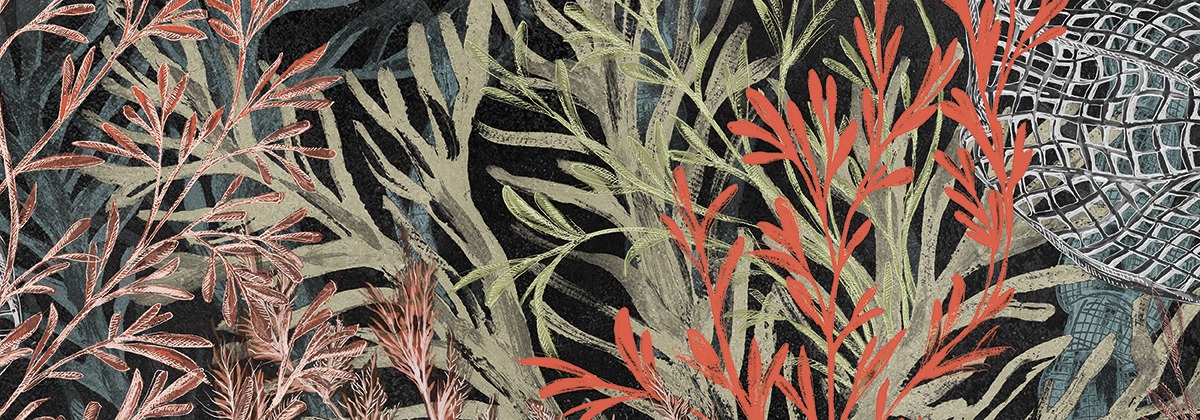 Signes et gravures à la recherche d’anciennes représentations naturalistes pour un monde sous-marin riche en couleurs.