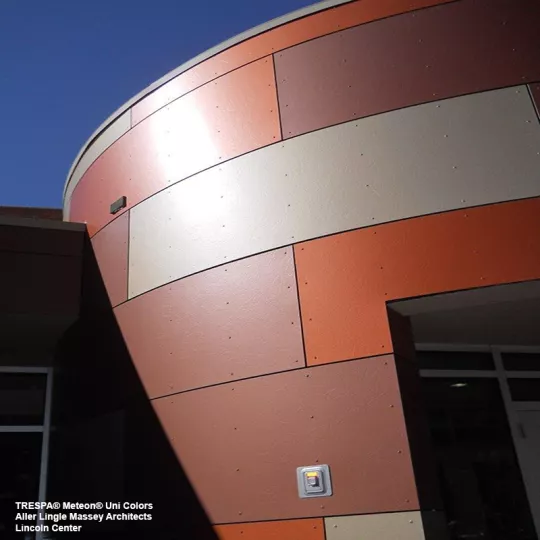 Trespa® Meteon® UNI COLORS est un stratifié compact haute pression (HPL) dont la surface décorative intégrée est obtenue par polymérisation par faisceau d’électrons (EBC), une technologie exclusive de Trespa®.Les panneaux Trespa® Meteon® peuvent être utilisés seuls ou en association avec d’autres matériaux.