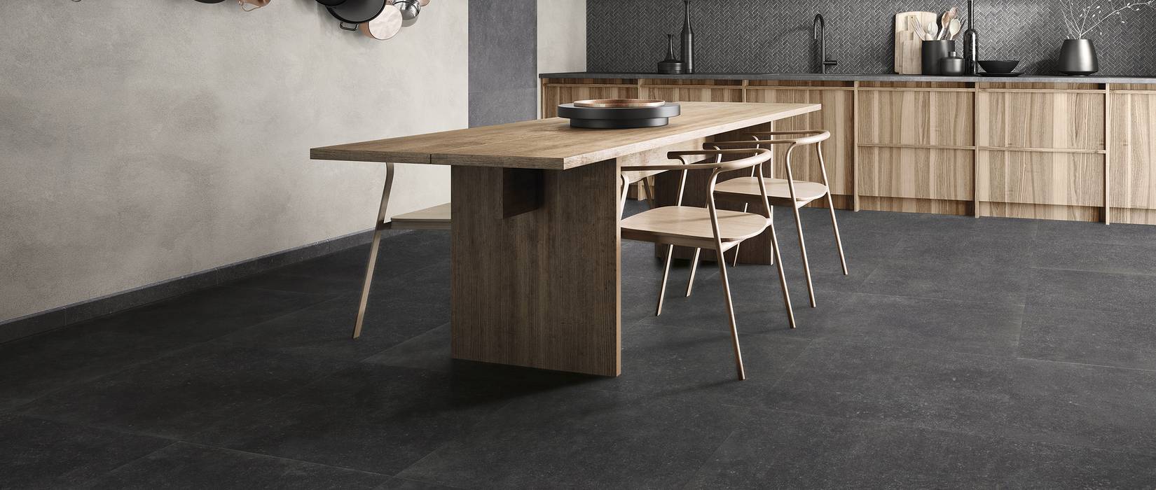 Disponible en différents formats et finitions (naturelle ou structurée pour les extérieurs), le projet French Mood vient compléter l’offre de la série Stonework en y insérant également des colorations chaudes (même la pierre bleue sélectionnée a des nuances chaudes, et non bleutées).