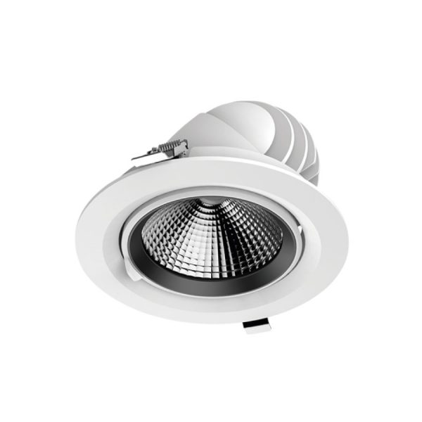 Aesthetically designed directional spotlight for commercial shop and retail sector, quality accent lighting with good color rendering and high uniformity, rotationally symmetric light distribution, full of flexibility and creativity with 3600 rotatable and -150 inward and 600 outward tiltable function for ideal highlighting without shadowing, remote driver, body made of diecast aluminium, faceted reflector.