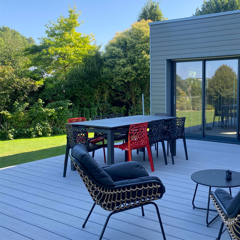 Grâce à la technologie Power Plus, la terrasse SYLNEO bénéficie de propriétés mécaniques exceptionnelles et d’une très forte résistance à l’abrasion. Elle vous assure une tenue parfaite dans le temps et un maintien de sa fonction antidérapante y compris sur sol humide. La lame ATRIA propose un aspect contemporain avec une lame large qui s’inscrit dans l’ère du temps.