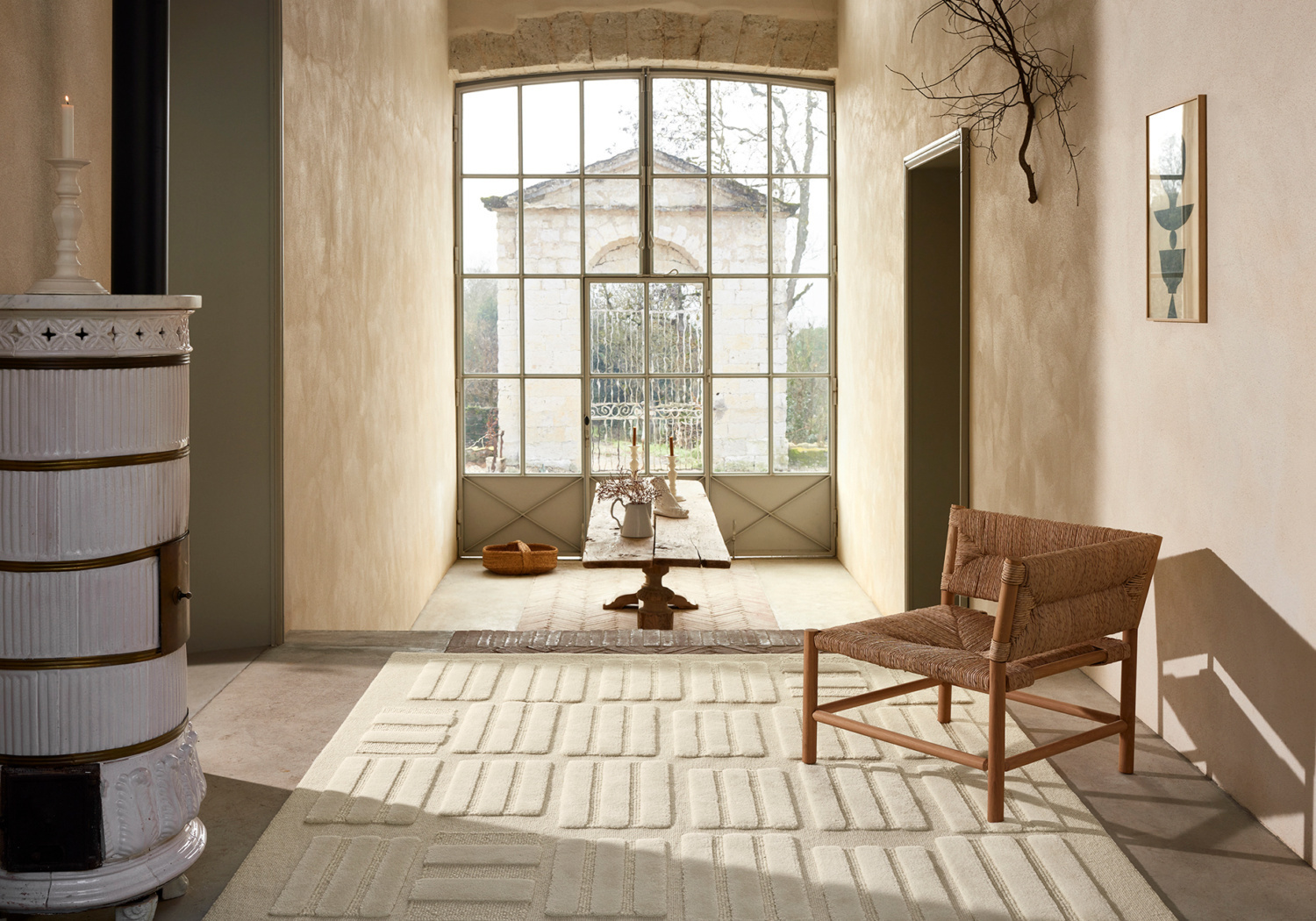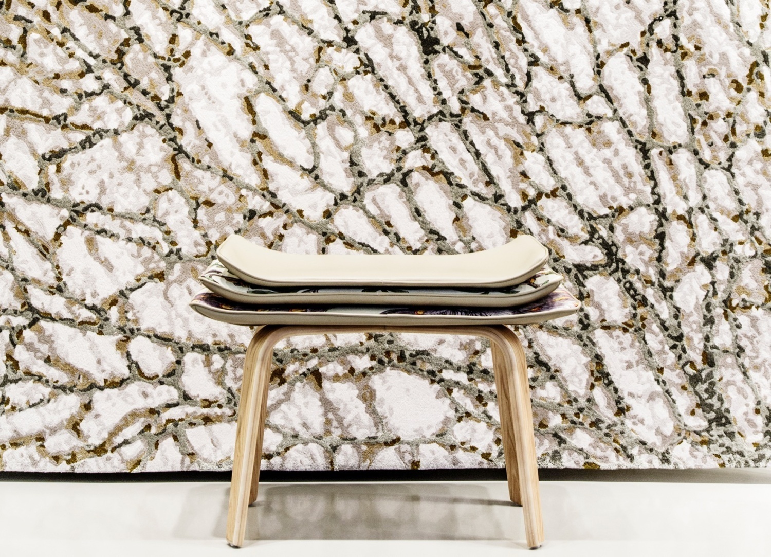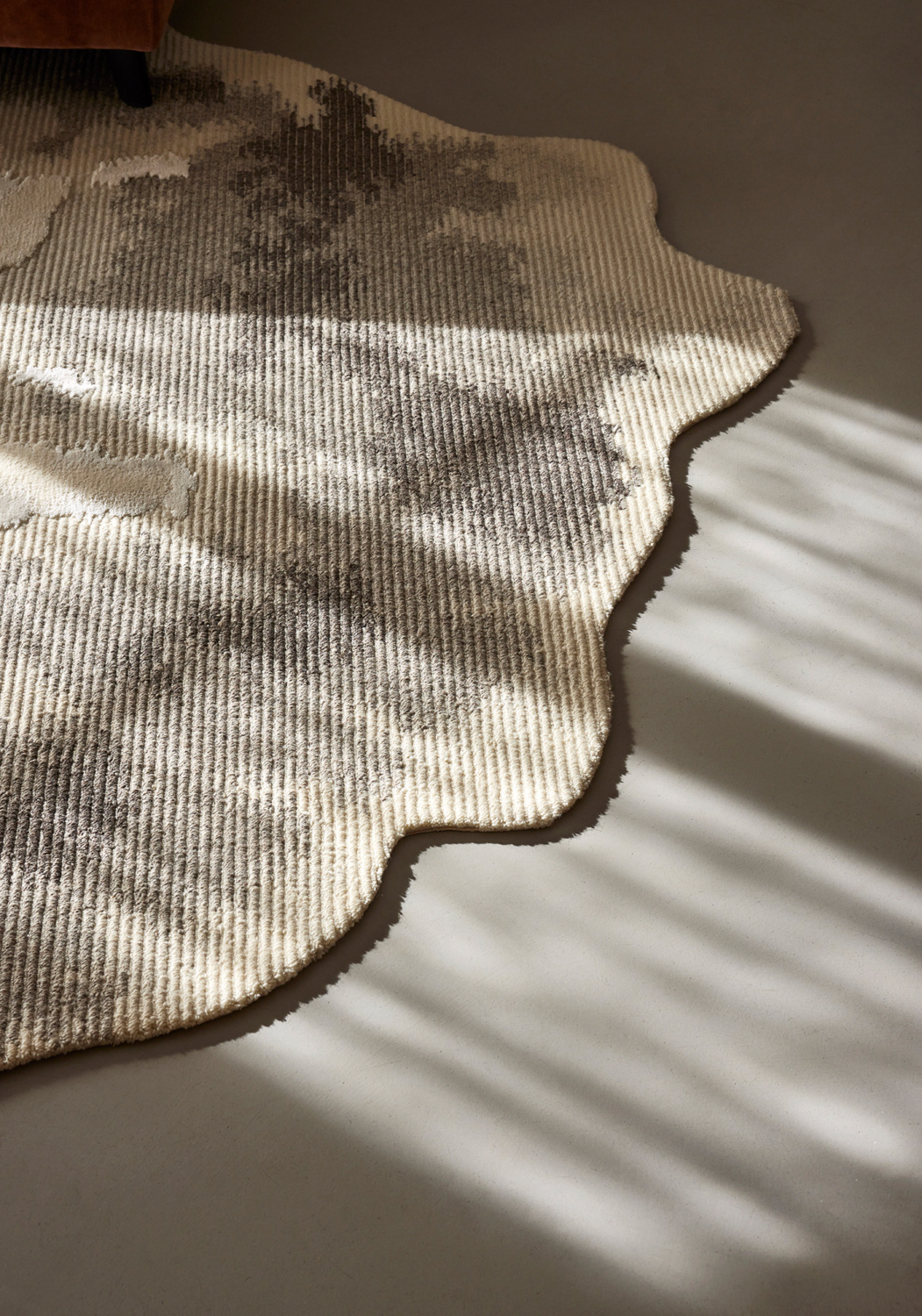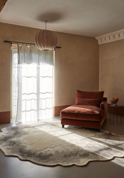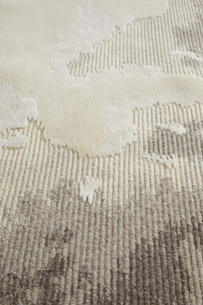 Itération diffuse du jeu de boucles et de lignes, Alizea ressemble au cœur d'un bouton de fleur. Techniquement soigné avec des sections tuftées serrées, le tapis façonné cultive un esprit sauvage.