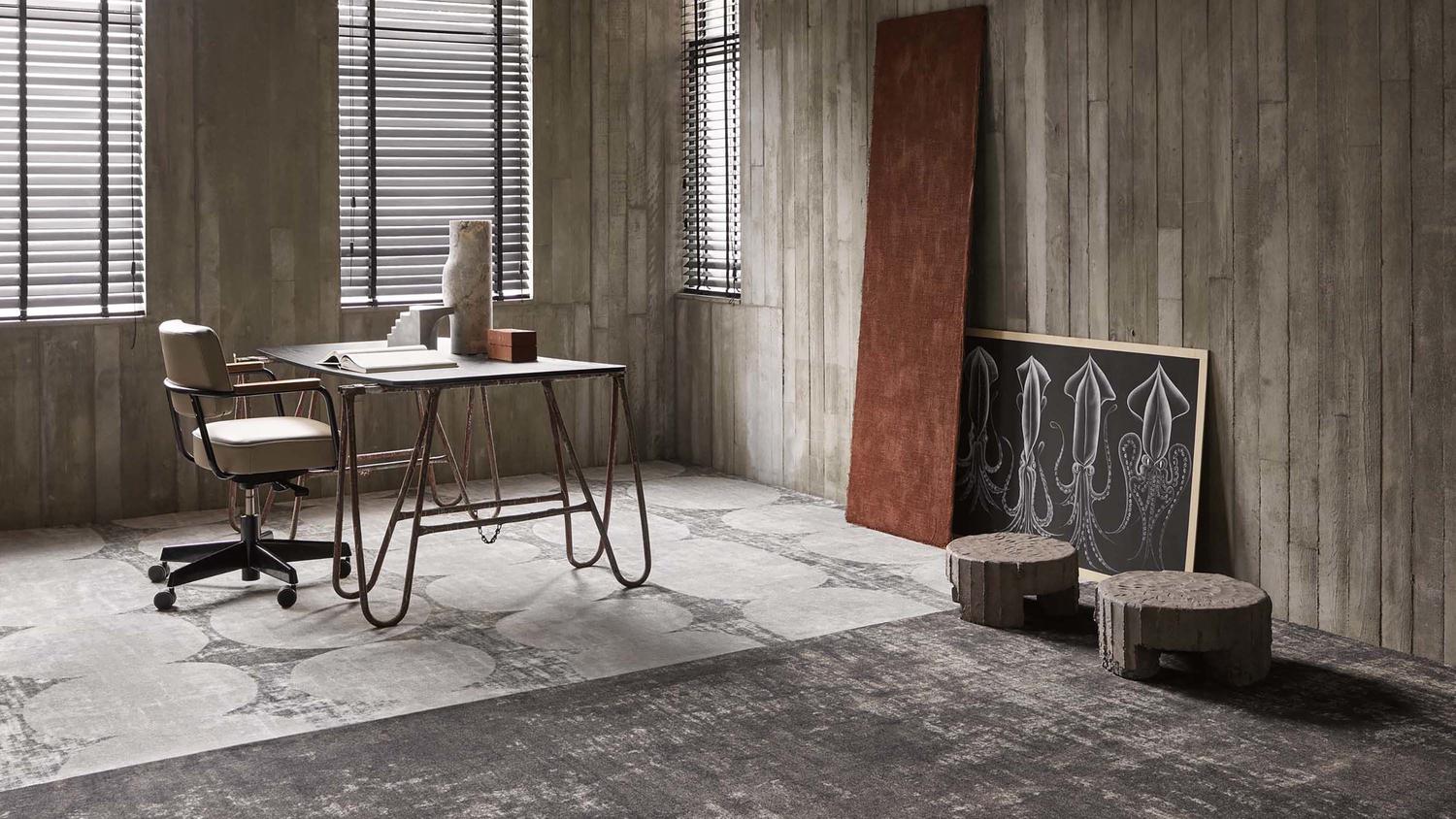 La collection DESSO & Ex Nature de Tarkett a été conçue en collaboration avec l’architecte d’intérieur Odette Ex en réponse à notre époque troublée. La collection puise dans notre désir inné de ne faire qu’un avec la nature. S’inspirant de matières et de matériaux vivants (mousse, sable et fleurs), la sublime collection d’Odette Ex nous emmène dans un voyage réparateur à travers une forêt. Les six couleurs de base (Earth, Sand, Moss, Cosmos, Charcoal et Violet) permettent d’obtenir un effet patiné magnifiquement authentique. Elles sont traversées de couches de lumière et d’ombre. La collection reflète l’émergence d’espaces multifonctionnels pour le travail, l’hôtellerie et les loisirs, avec des solutions créatives qui répondent à un ensemble plus global de besoins conscients et inconscients.