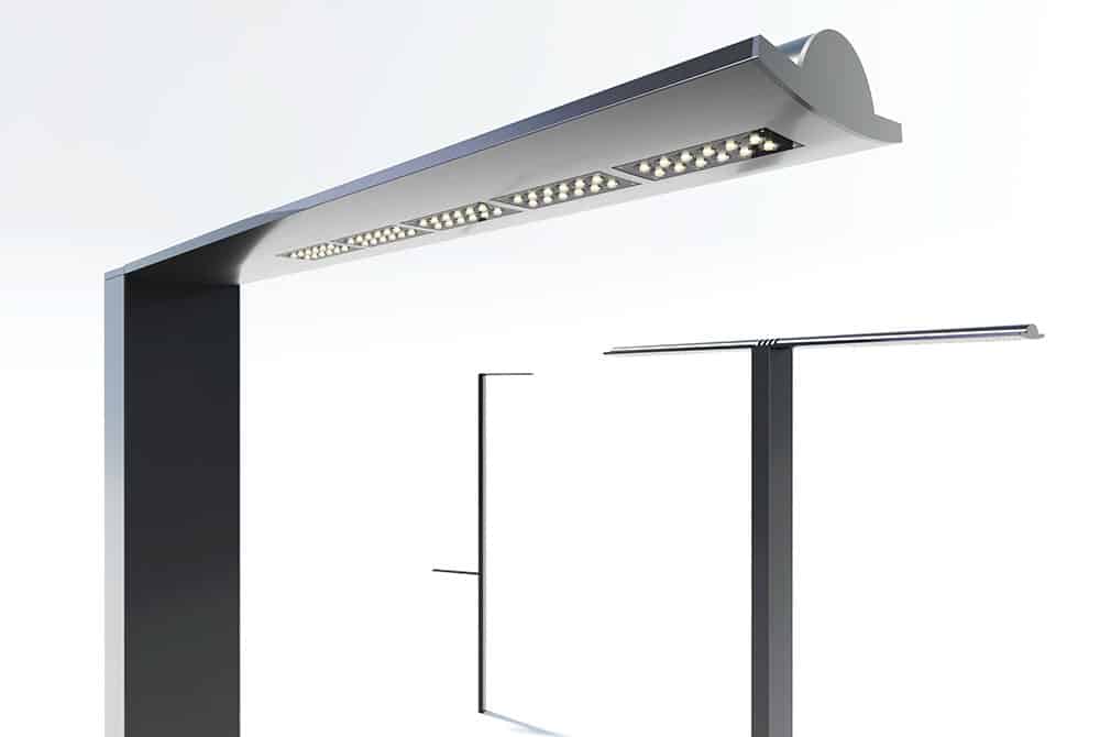 Bras en profil aluminium extrudé avec réservation pour accueillir le luminaire. Tête de mât simple ou double.