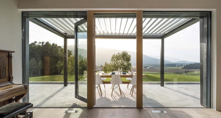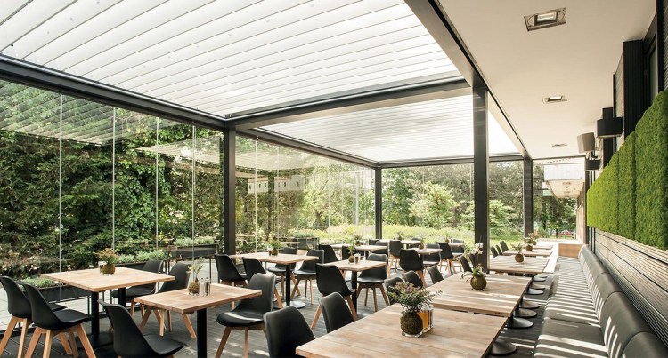 Le produit Pergola à lames : Pergola Twist du fabricant TERRASSEN VAN HOOF classé dans la catégorie Menuiseries extérieures > Vérandas - bow windows - marquises - pergola > Auvents - marquises - pergola est référencé dans la Matériauthèque digitale Materiaux.archi.
