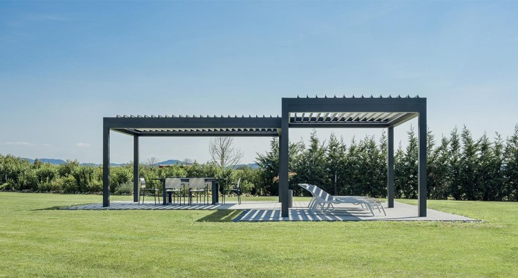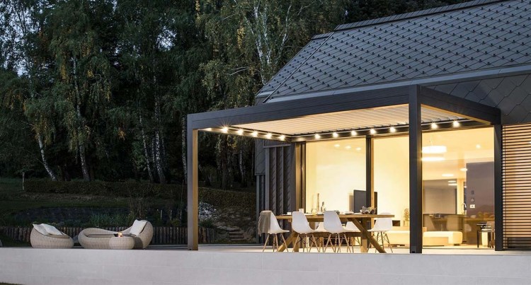 La pergola Twist est l’une des grandes pergolas horizontales avec un toit à persiennes. Ce toit protège l’utilisateur de la pluie et d’une certaine quantité de neige. Le toit à lames peut être commandé via une télécommande et est facile à orienter de 0° à 120°. Cela vous permet d’ajuster facilement le toit aux besoins de la terrasse et à la position du soleil.
