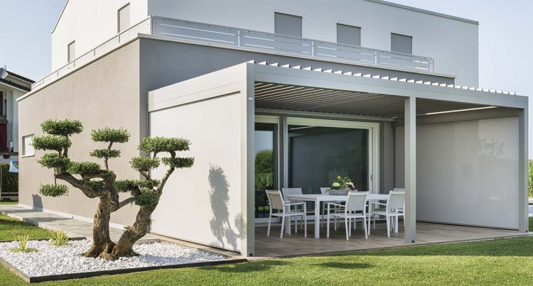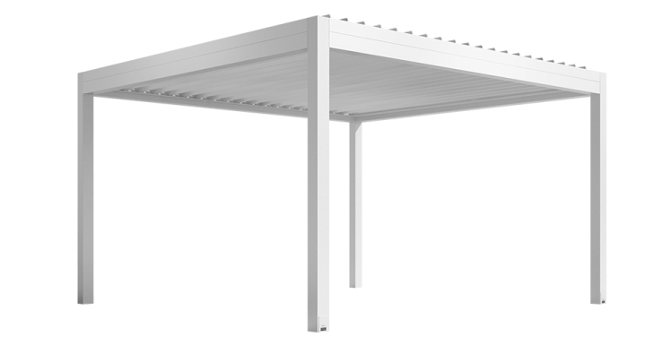 Le modèle de pergola Joy est l’une de nos pergolas bioclimatiques qui se caractérisent par leur toit à persiennes. Ce toit à lames peut être contrôlé manuellement à l’aide de notre télécommande. Les lames sont faciles à orienter de 0° à 120°. Cela donne à l’utilisateur la possibilité d’ajuster les lames à la position du soleil. Une fois fermé, un toit à lames offre une protection optimale contre la pluie et les rayons UV.