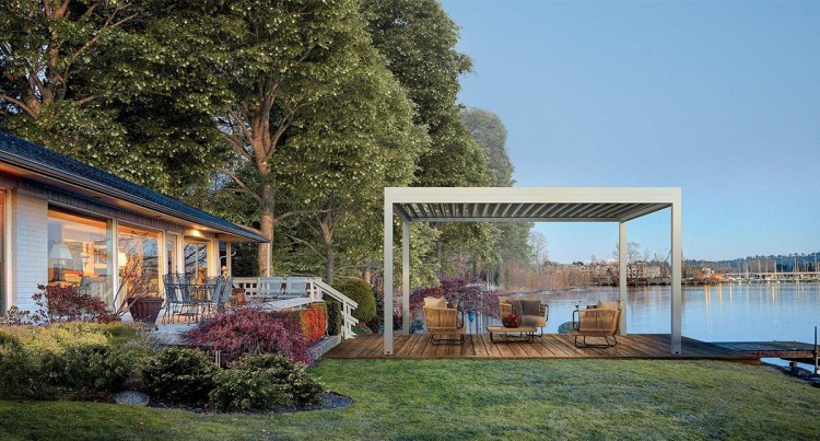 Le produit Pergola avec toit à lames : Pergola Joy de TERRASSEN VAN HOOF est prescrit dans des projets de type : Habitat individuel .