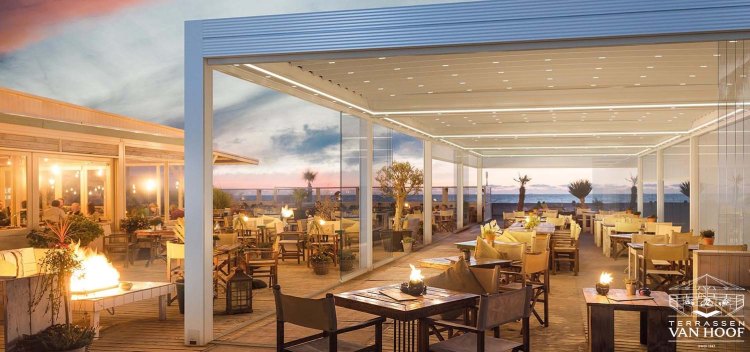 Le produit Pergola avec toit rétractable : Pergola Azimut du fabricant TERRASSEN VAN HOOF classé dans la catégorie Menuiseries extérieures > Vérandas - bow windows - marquises - pergola > Auvents - marquises - pergola est référencé dans la Matériauthèque digitale Materiaux.archi.