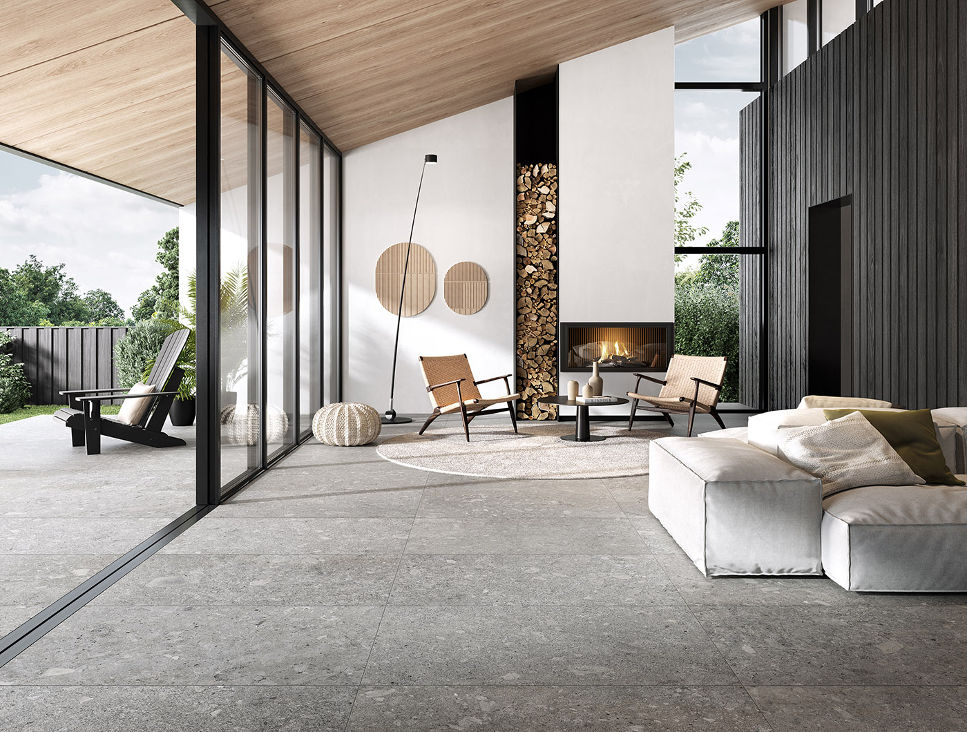 Terratinta Ceramiche développe les qualités de la pierre de Vicence, ses légères nuances qui déplacent la surface offrant des détachements chromatiques imperceptibles dans la même nuance.