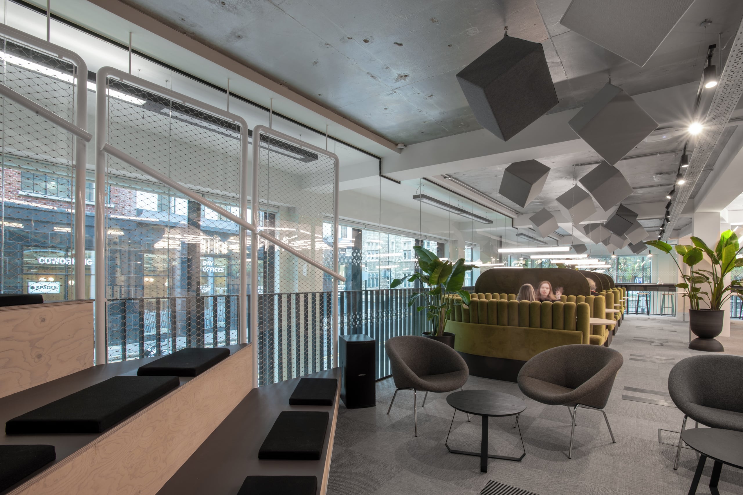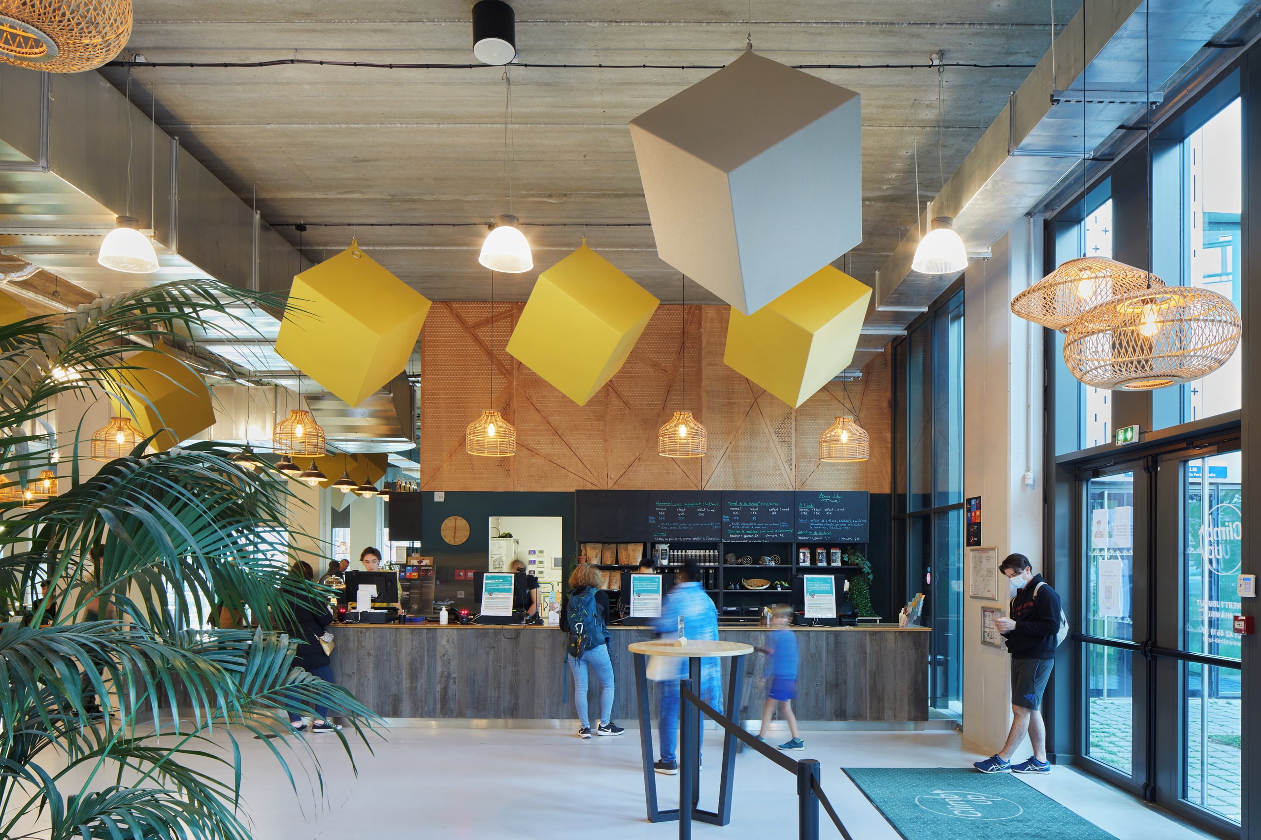 Les cubes Abso suspendus en plafond sont une bonne solution dans les grands volumes et en l’absence de surface murale disponible.