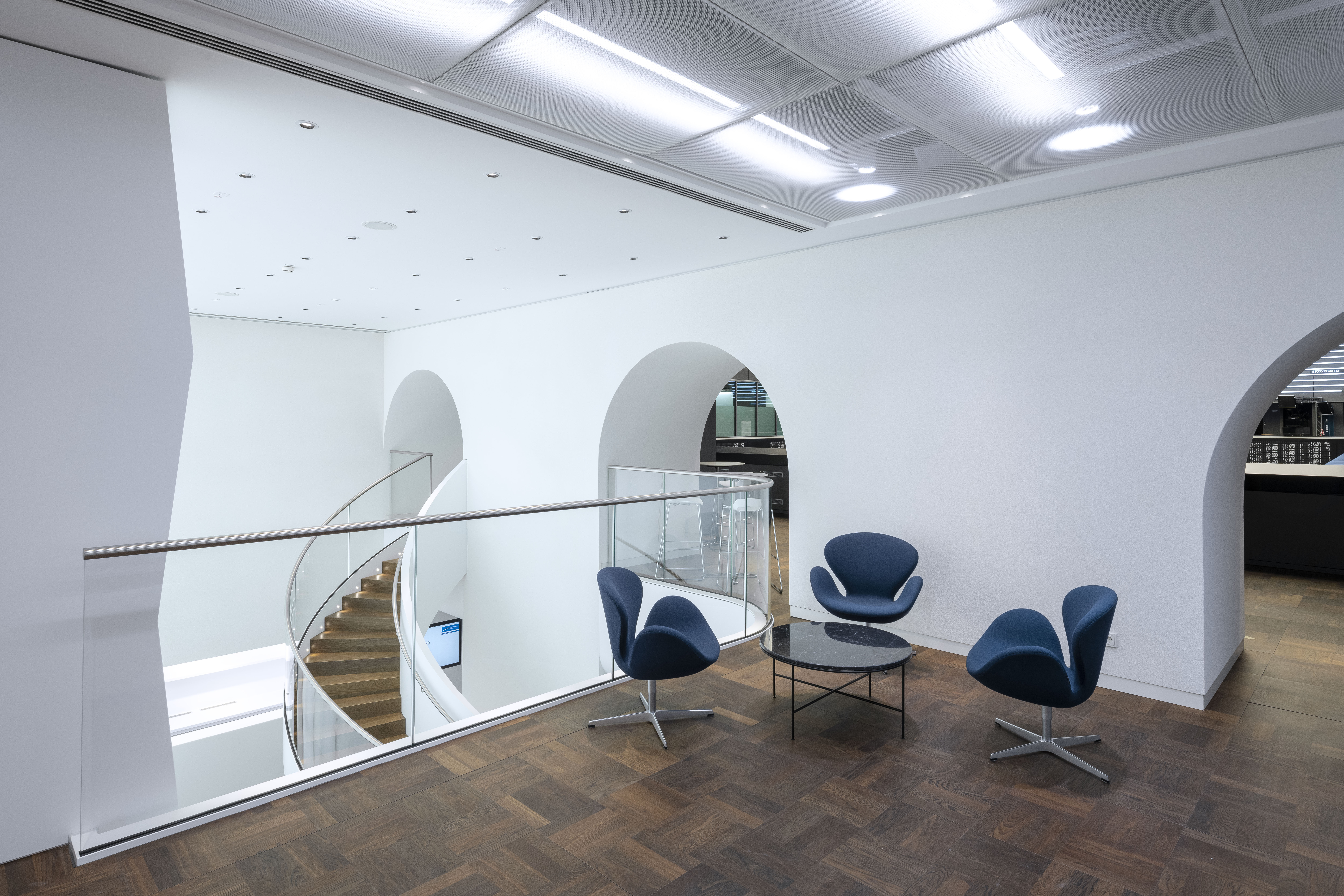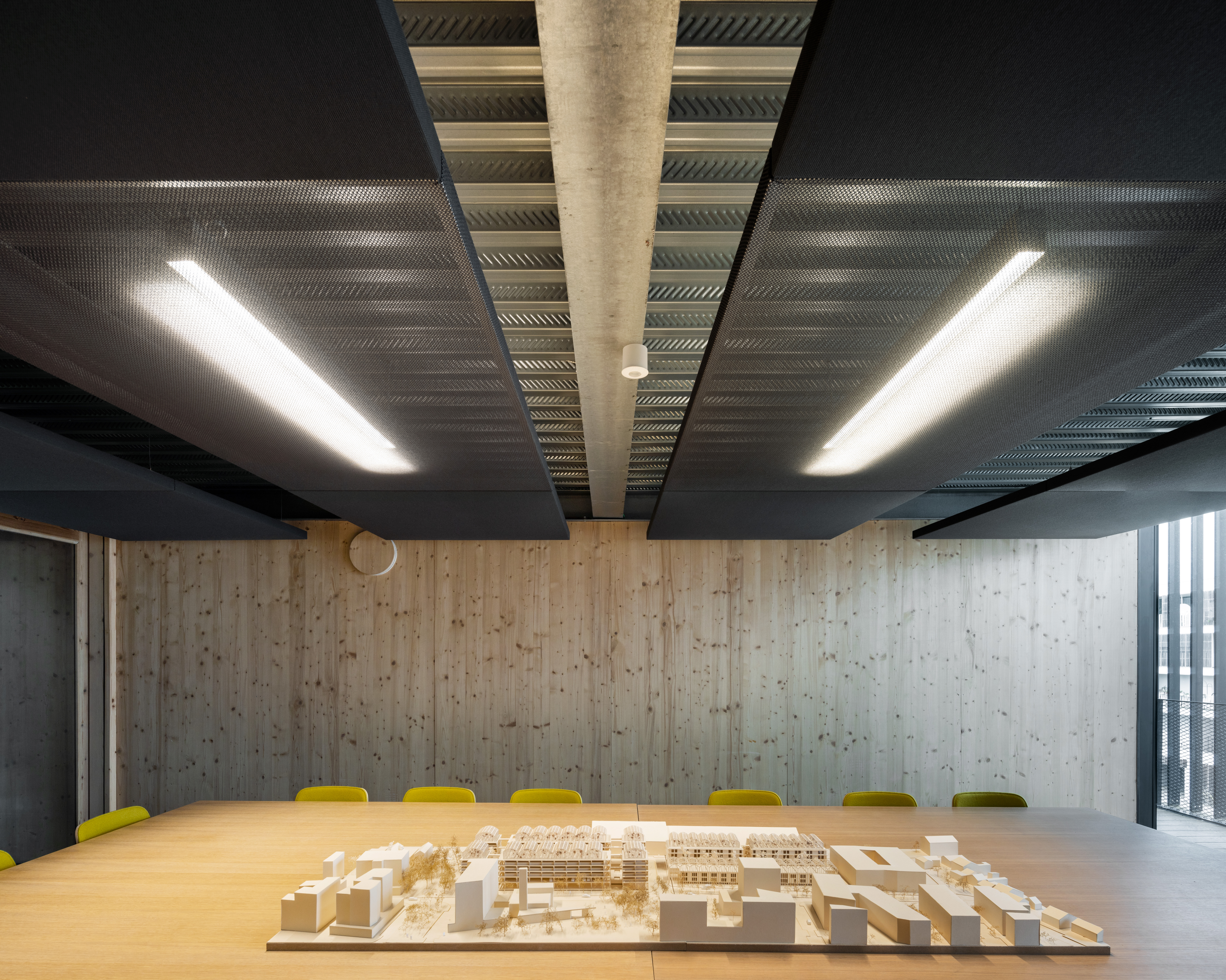Chaque panneau est suspendu au moyen de simples câbles verticaux et peut aisément être relié aux autres pour créer d’élégants îlots suspendus.