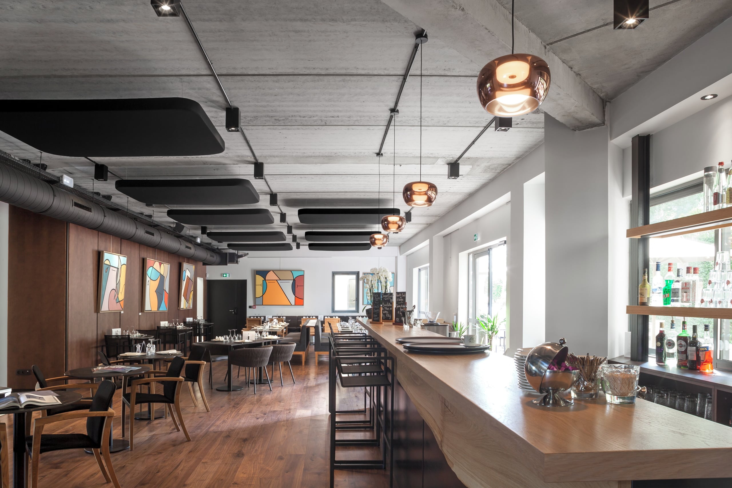 Complémentaires d’un plafond modulaire traditionnel, les pavés Abso sont pourvus d’une forme plane ou biseautée qui autorise autant de combinaisons pour animer l’espace.