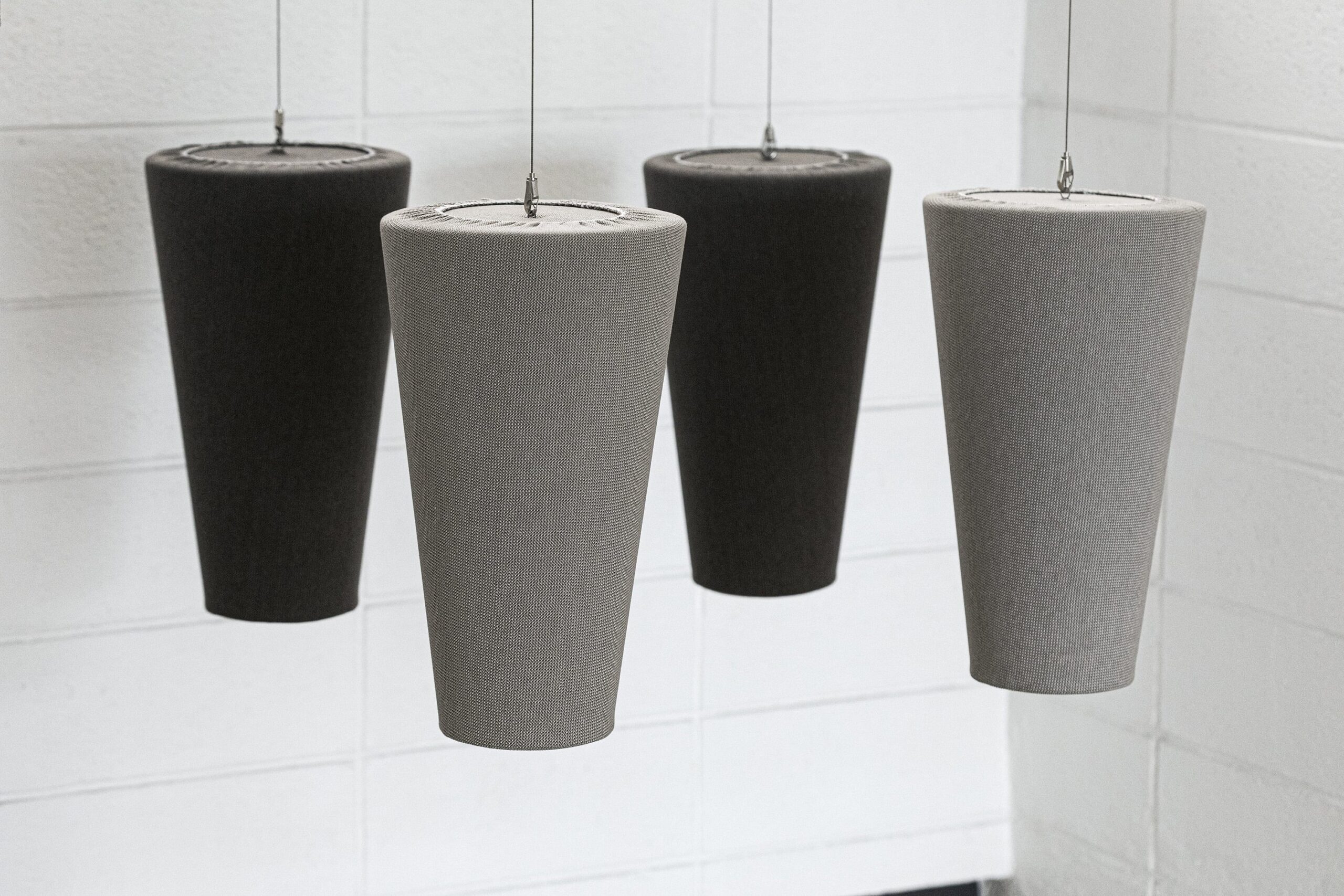 Les cubes Abso suspendus en plafond sont une bonne solution dans les grands volumes et en l’absence de surface murale disponible.