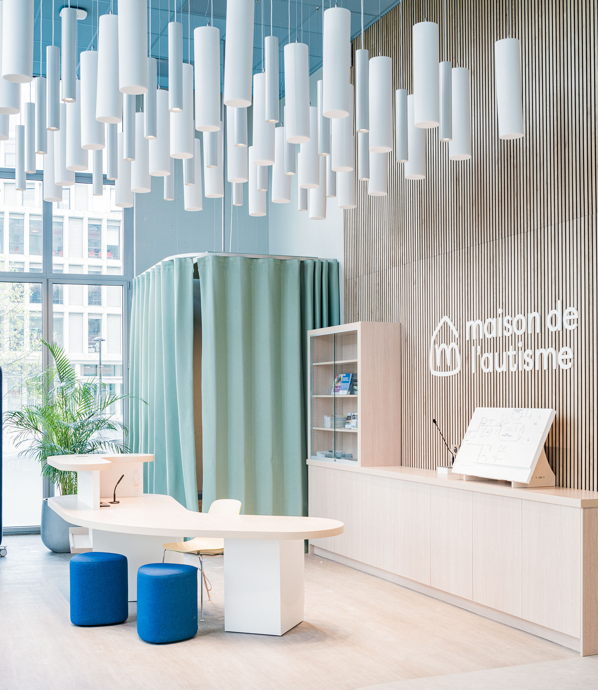 Placés devant un vitrage, les rideaux acoustiques absorbants Alpha de Texaa absorbent les résonances, tamisent la lumière et améliorent le confort des usagers.Ils permettent de traiter l’absorption acoustique tout en modulant la luminosité d’une pièce.
