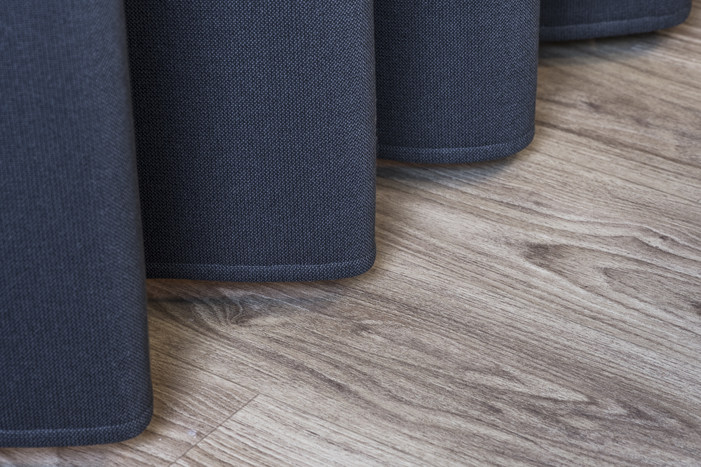 Les rideaux acoustiques absorbants Alpha de Texaa sont confectionnés à partir de deux pans de ouate absorbante habillée d’Aeria. Ces parois souples