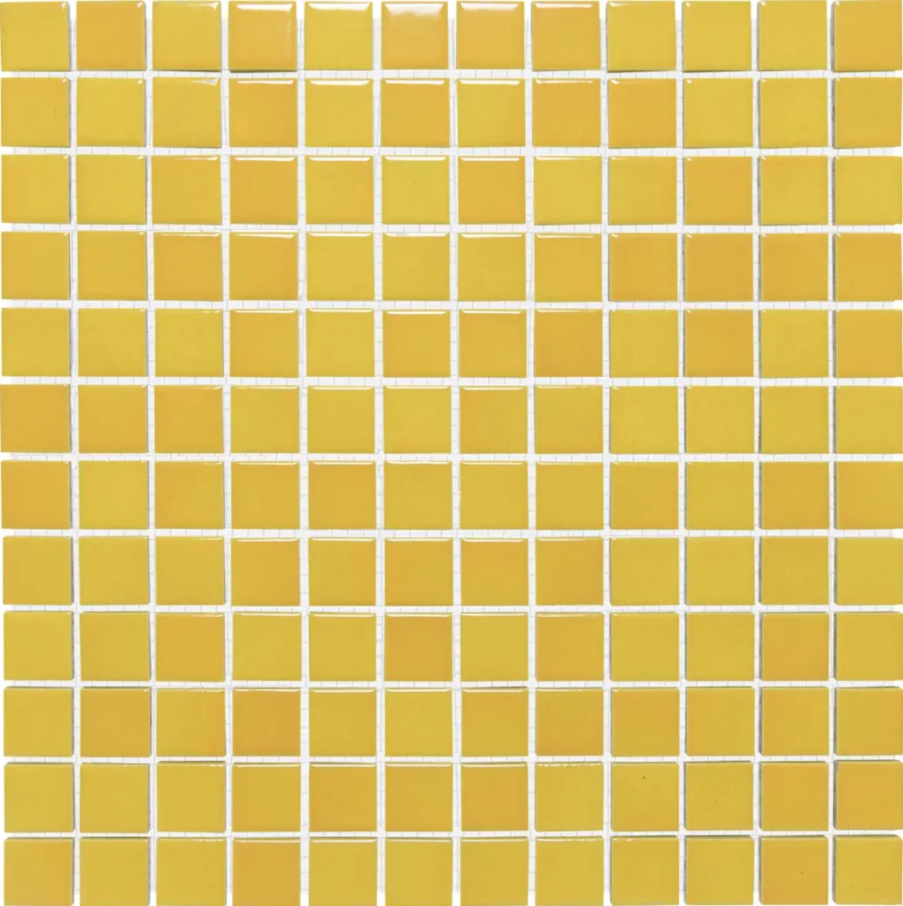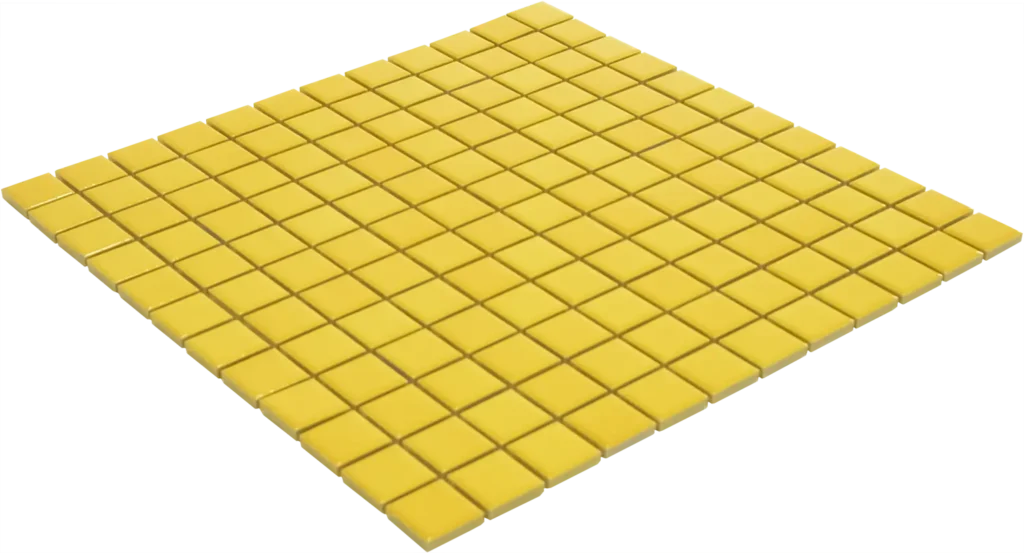 Mosaïque flammée jaune brillant, de la série Barcelone, en porcelaine émaillée.