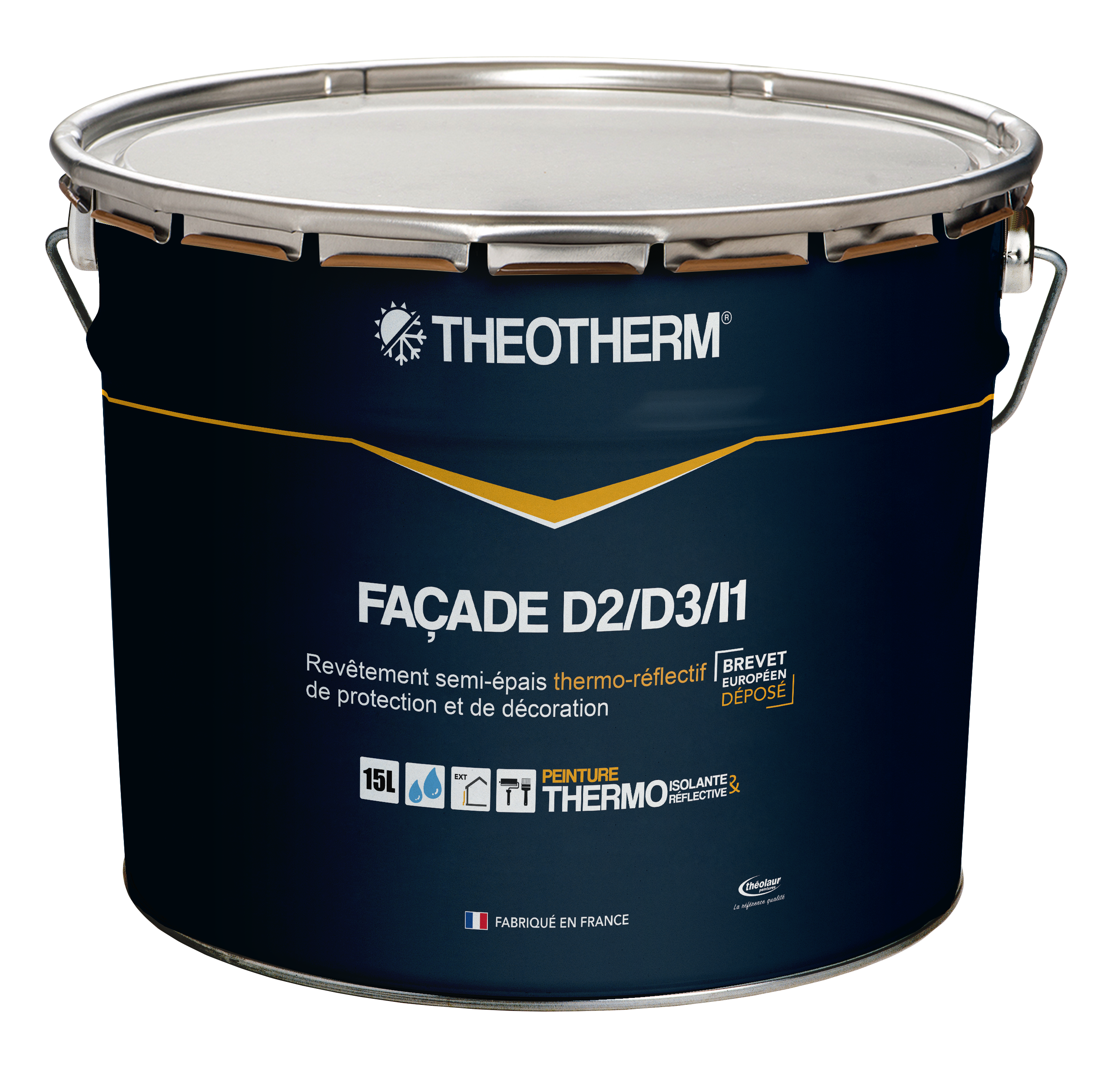 Le produit THEOTHERM® Façade du fabricant Theolaur classé dans la catégorie Revêtement mural extérieur > Enduits et peintures > Peintures à fonction particulière est référencé dans la Matériauthèque digitale Materiaux.archi.