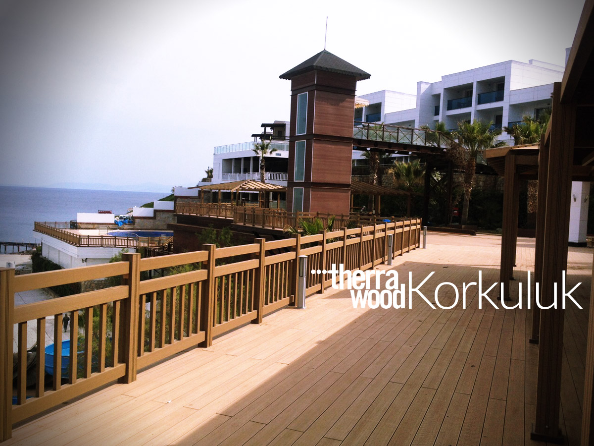 DE L’AIR EXTÉRIEUR Les produits fabriqués à partir de TherraWood, un mélange unique de PVC, de fibre de bois et d’autres composants exclusifs, constituent une alternative élégante, rentable, durable et sûre au bois pour les zones de loisirs extérieures résidentielles et commerciales. TherraWood fournit des matériaux de construction nécessitant peu d’entretien, imputrescibles et résistants aux dommages causés par les insectes et les UV. Ce matériau composite unique crée également des structures sûres, antidérapantes et sans éclats, parfaites pour tout environnement extérieur. TherraWood est idéal pour le consommateur soucieux de la valeur qui souhaite également un produit luxueux à l’attrait intemporel.