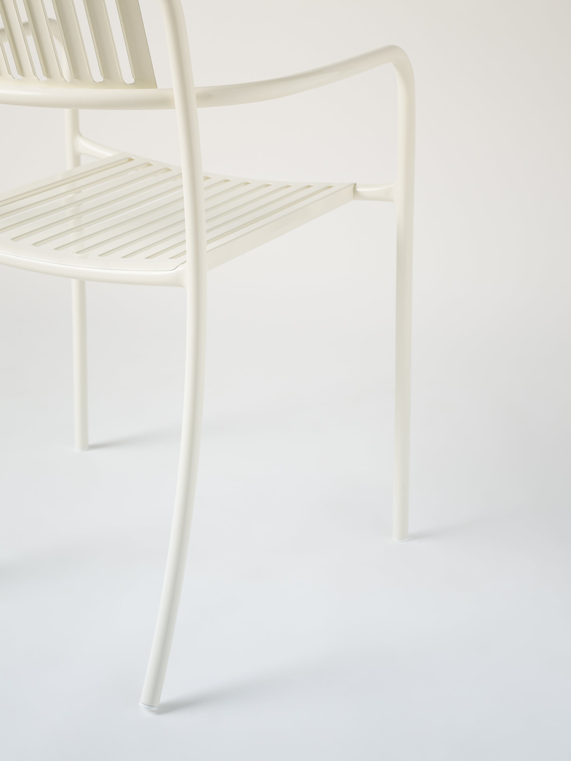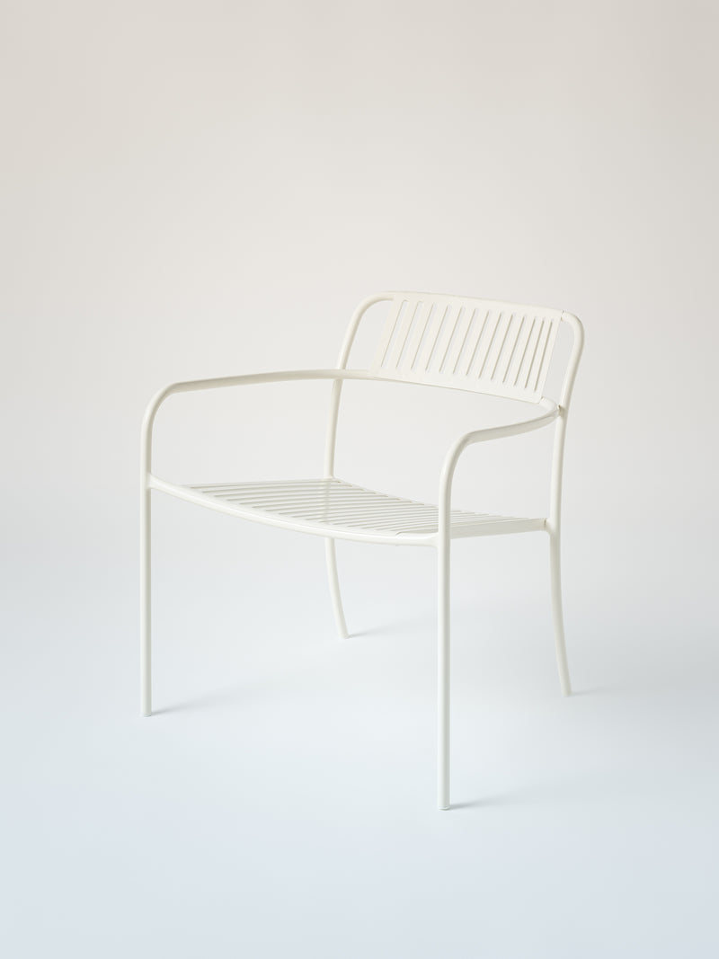 Première pièce de la Collection d'extérieure Patio, imaginée par Pauline Deltour en 2019, ce fauteuil suit le trait délicat de l'artiste avec légèreté et féminité. Sur des tubes d'une grande finesse, une assise prédécoupée au laser est composée de lames ajourées qui ajoutent de la délicatesse à un produit robuste et durable. L'utilisation de l'inox pour ce produit lui confère tout à la fois une longévité inégalable et, par un jeu de pliage sous l'assise, une résistance tout en légèreté du fait de la composition même de cet alliage. On notera l'unique tube cintré qui relie les pieds avant et le dossier respectant la main de l'artiste qui glisse sur sa feuille de dessin sans s'interrompre. Un beau fauteuil, digne héritier du savoir faire de la Manufacture Tolix, au raffinement contemporain.