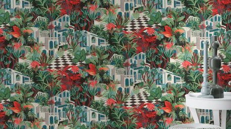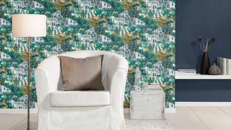 Le produit Papier peint intissé Tropical House Méditerranéen bleu - RA00432 du fabricant Tollens classé dans la catégorie Revêtement mural > Papiers peints - fibres et vinyles collés > Papiers peints et papiers peints vinyles est référencé dans la Matériauthèque digitale Materiaux.archi.
