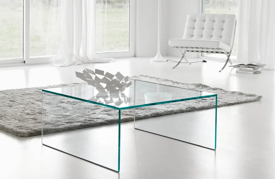 Les tables Eden sont entièrement réalisées en verre . La structure de cette table, accessoire d'ameublement parfait pour les salons et les salons, est en pont de verre transparent ou extra-clair et exalte la simplicité et la rigueur formelle. Peut être commandé dans des tailles personnalisées, sur demande. Cette table basse est polyvalente et durable, avec une capacité de charge maximale de 50 kg.