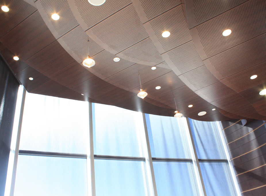 Déclinable en panneaux et lames, Topakustik Perfo est le système acoustique et design pour les revêtements muraux et plafonds.