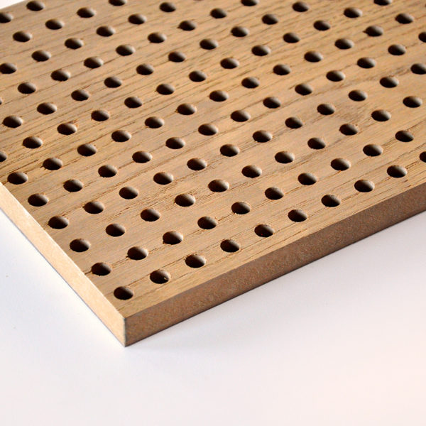 Micro Perforé est un panneau medium ignifugé replaqué d’une face décorative avec micro-perforation de 0,5mm.