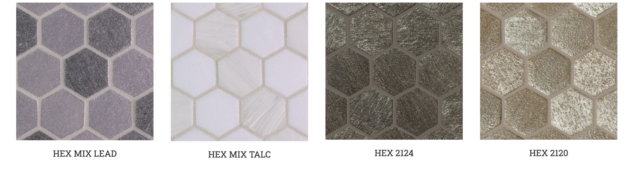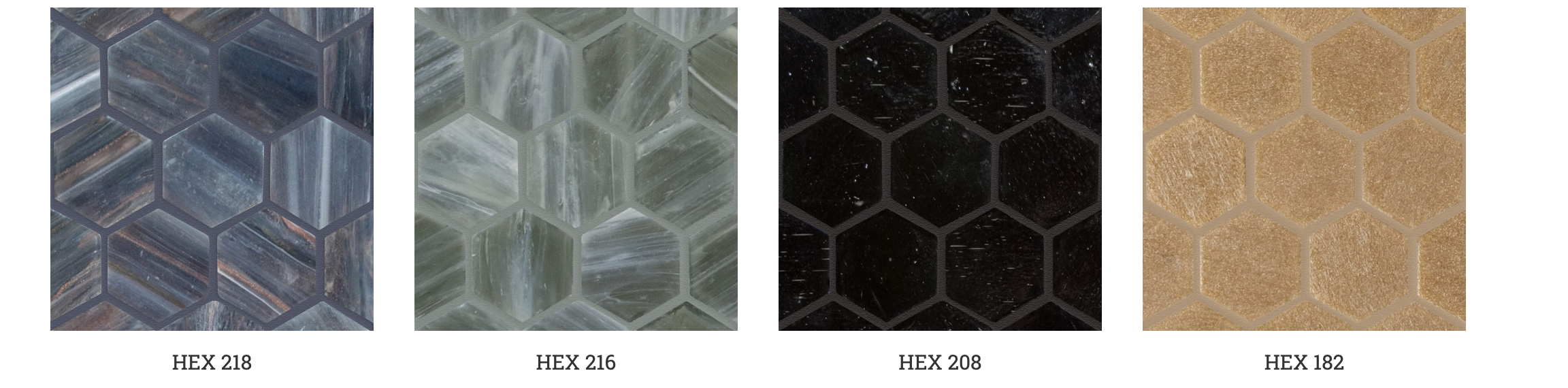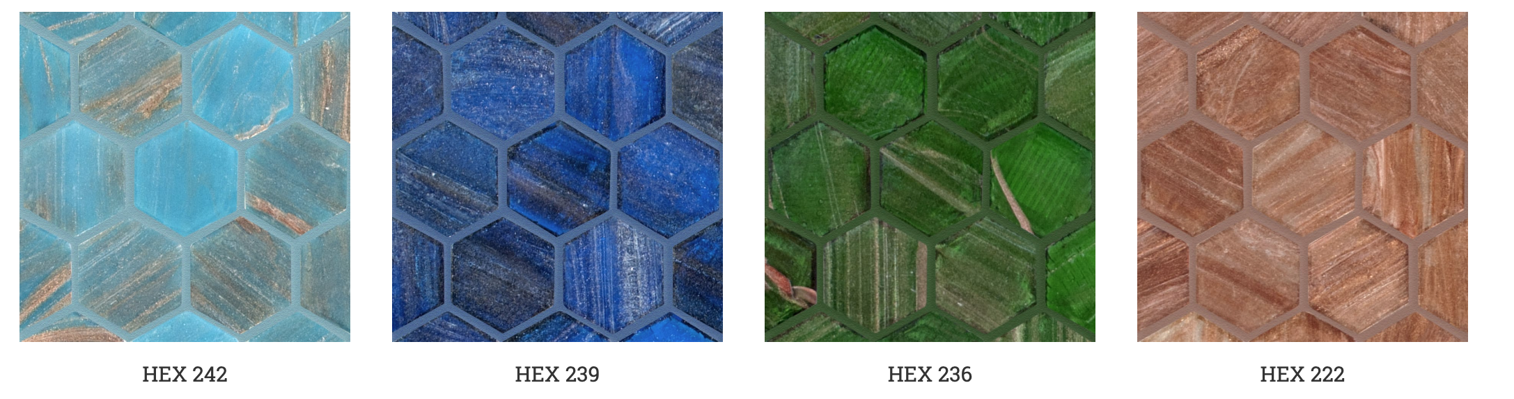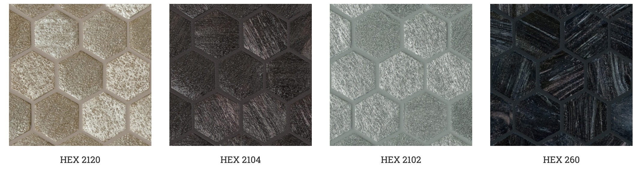 Hexagonal mosaics can be installed on the floor or vertically on interior and exterior surfaces. It is suitable for wet areas such as shower trays or swimming pools. Due to the size of the tesserae and the frequency of joints, the mosaic surface is inherently slip-resistant. The waterproof characteristics of this mosaic do not preclude waterproofing of the foundation substrate for swimming pools and similar applications.