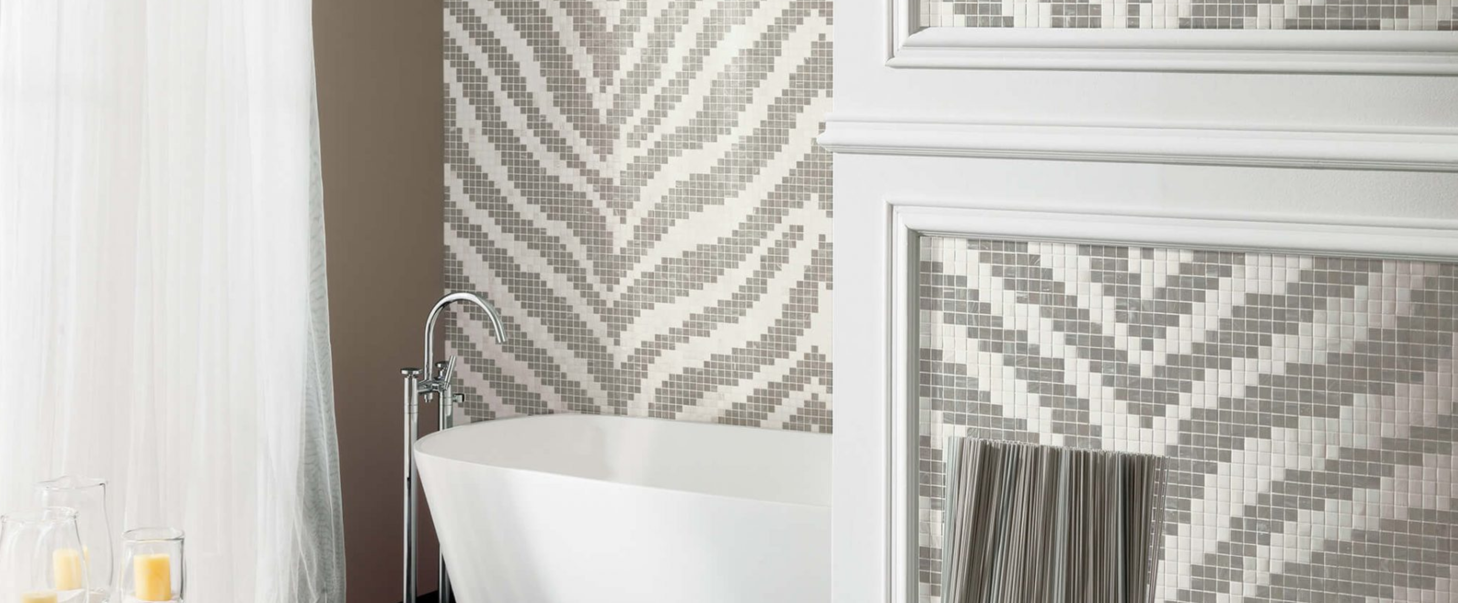 Vitreo can be installed on horizontal or vertical surfaces, interior or exterior. It is suitable for wet areas, such as showers, swimming pools and building facades. The size of the tesserae (2 x 2 cm | 3/4″ x 3/4″) and the frequency of the joint (~ 1 mm | 2/48”) means that the surface has inherent slip resistance. Although the mosaic is waterproof, this does not preclude waterproofing the foundation for swimming pools and similar applications.