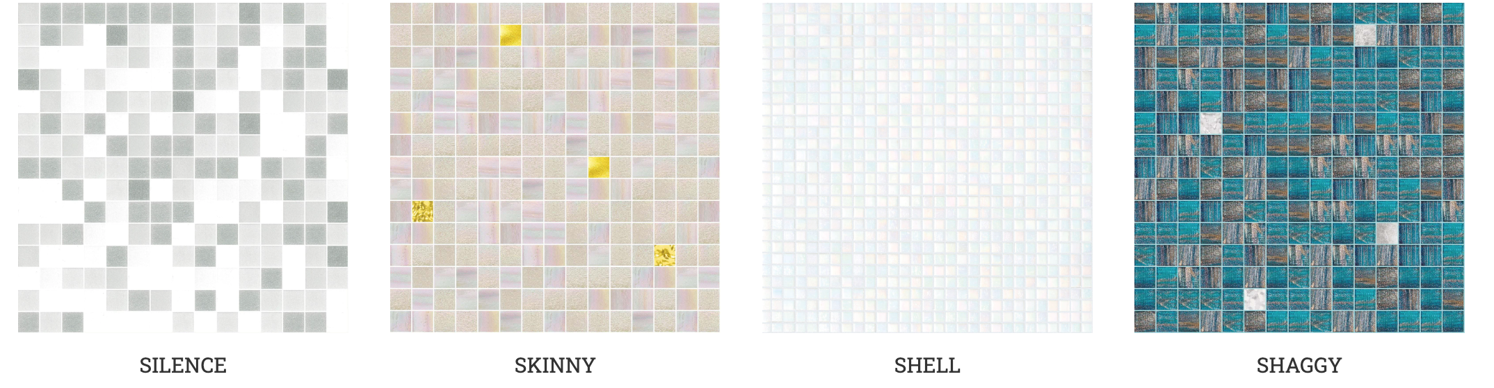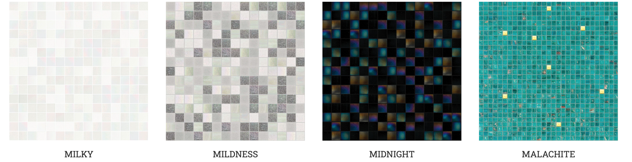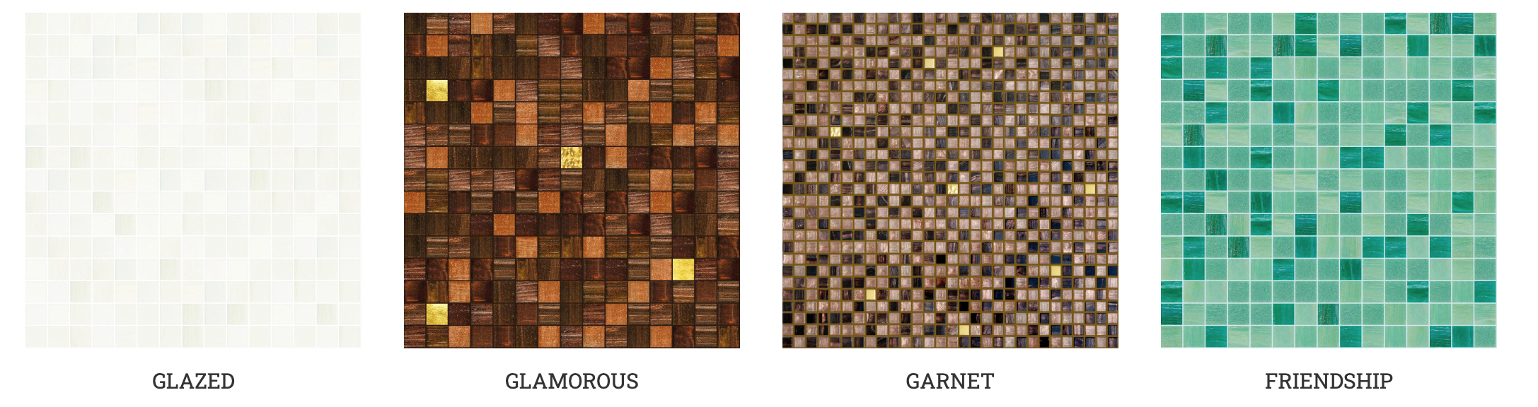 Mosaic mixes can be installed on floor or vertically application and on interior and exterior surfaces. It is also suitable for wet areas such as shower or swimming pools. The waterproof characteristics of these mosaics do not preclude waterproofing the foundation for swimming pools and similar applications.
