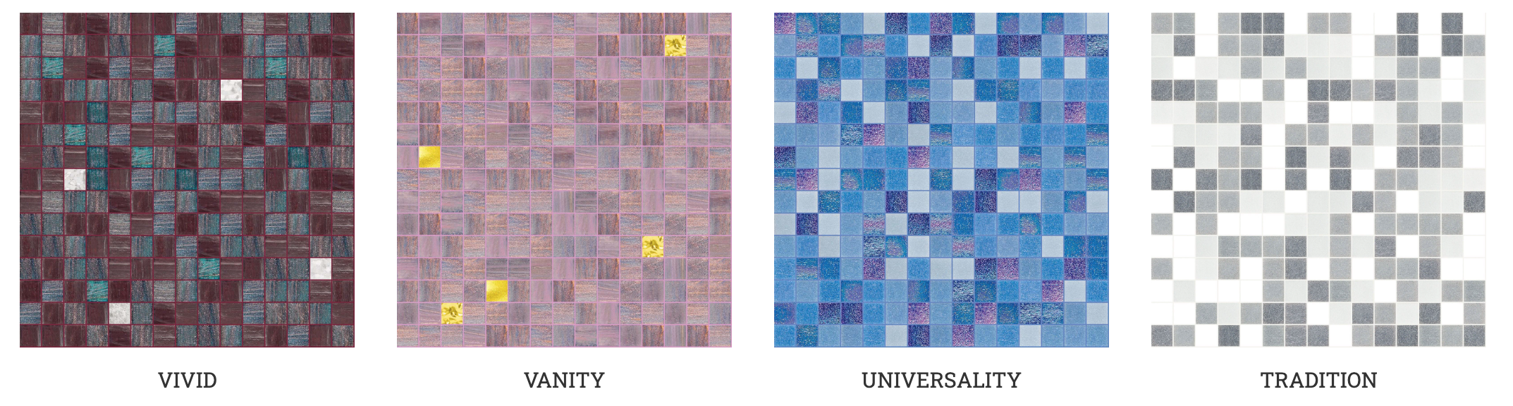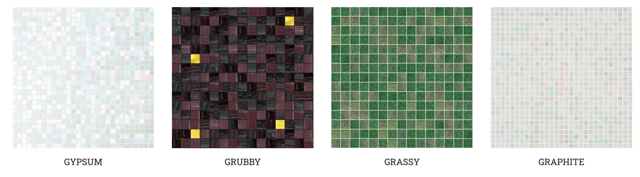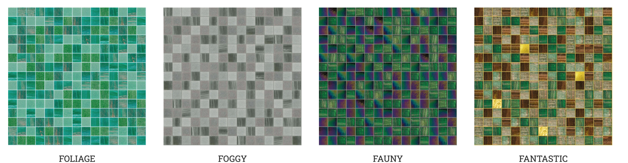 Mosaic mixes can be installed on floor or vertically application and on interior and exterior surfaces. It is also suitable for wet areas such as shower or swimming pools. The waterproof characteristics of these mosaics do not preclude waterproofing the foundation for swimming pools and similar applications.