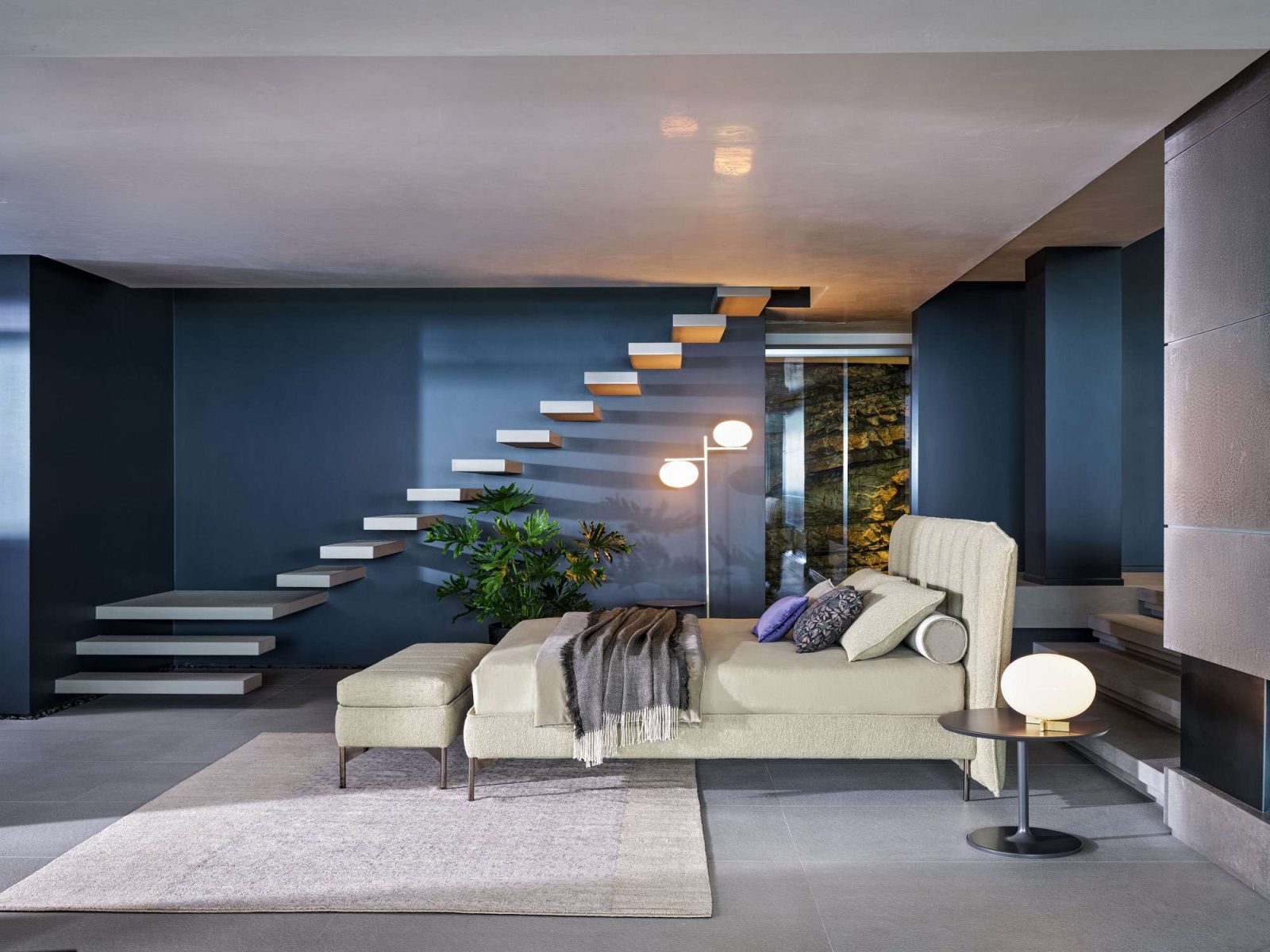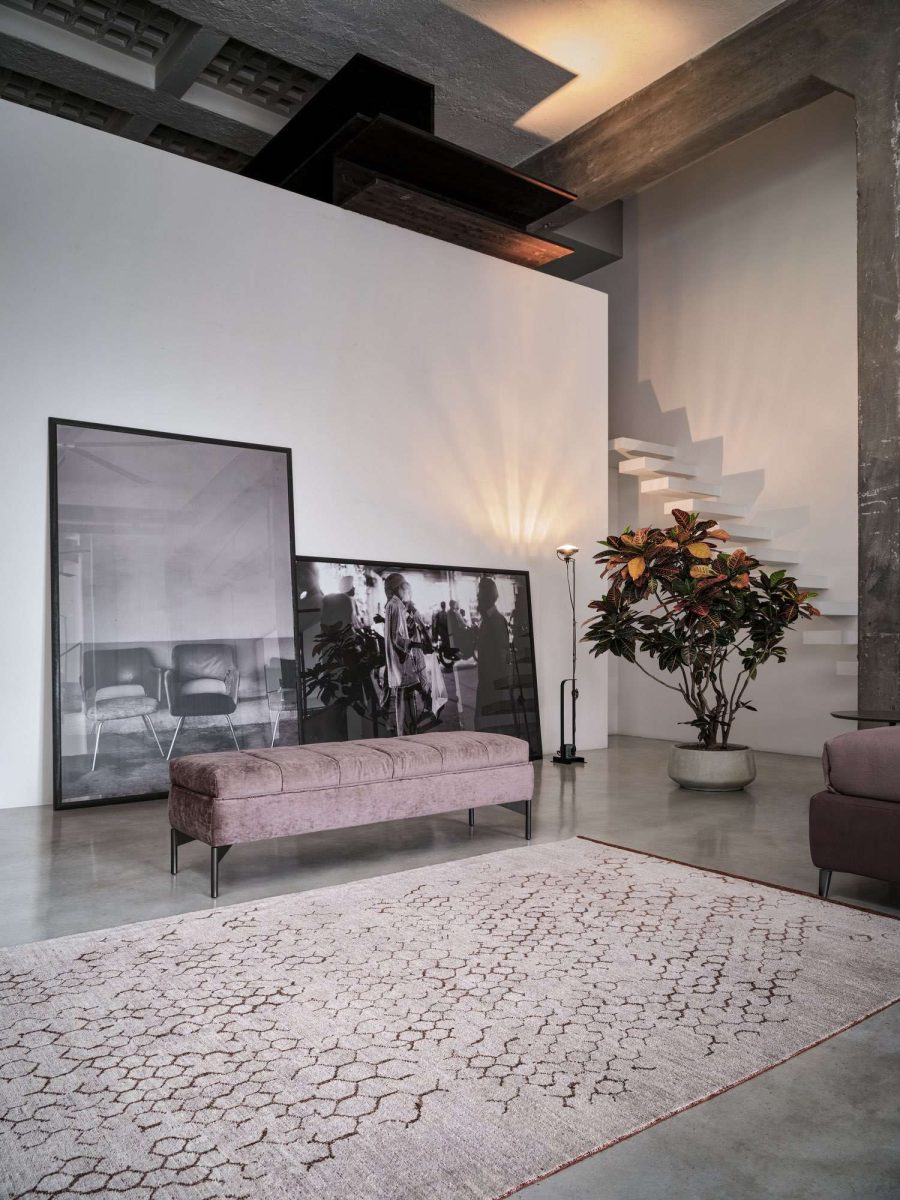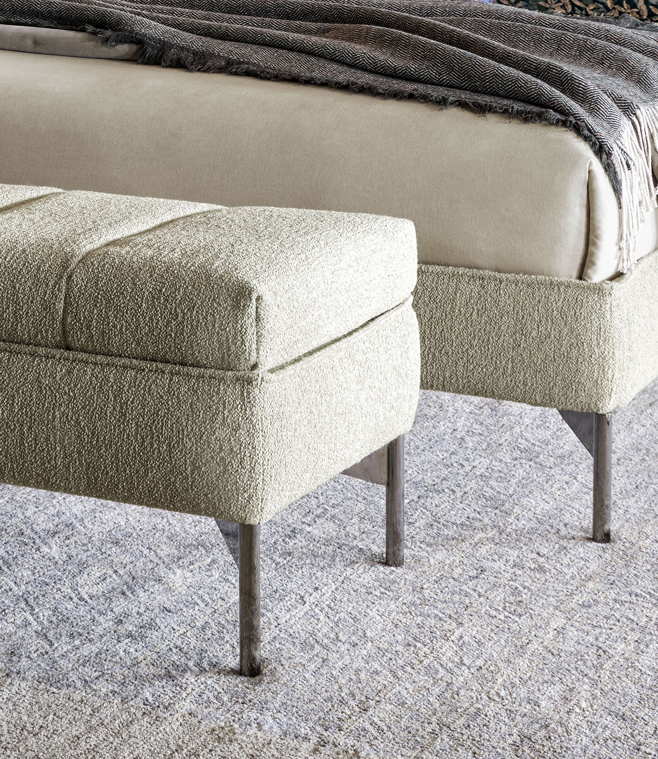 La banquette Opéra s’inspire du lit du même nom, apportant le rythme cadencé des divisions de la tête de lit dans les coutures de la partie supérieure. La jambe est également la même, pour suggérer une adéquation parfaite.