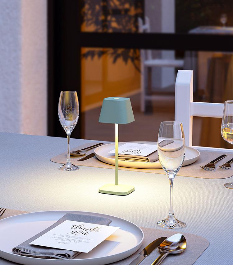 Lampe de table rechargeable avec une base de chargement par contact. Ce luminaire se compose d'un cylindre bordé et d'un fond rond. Lampe de table sans fil fournissant une lumière directe vers le bas et sans éblouissement. Protection IP65, ce qui la rend idéale pour une utilisation intérieure et extérieure. Tête, tige et base en alliage d'aluminium résistant à la corrosion et peint. Protection par revêtement en poudre polyester.