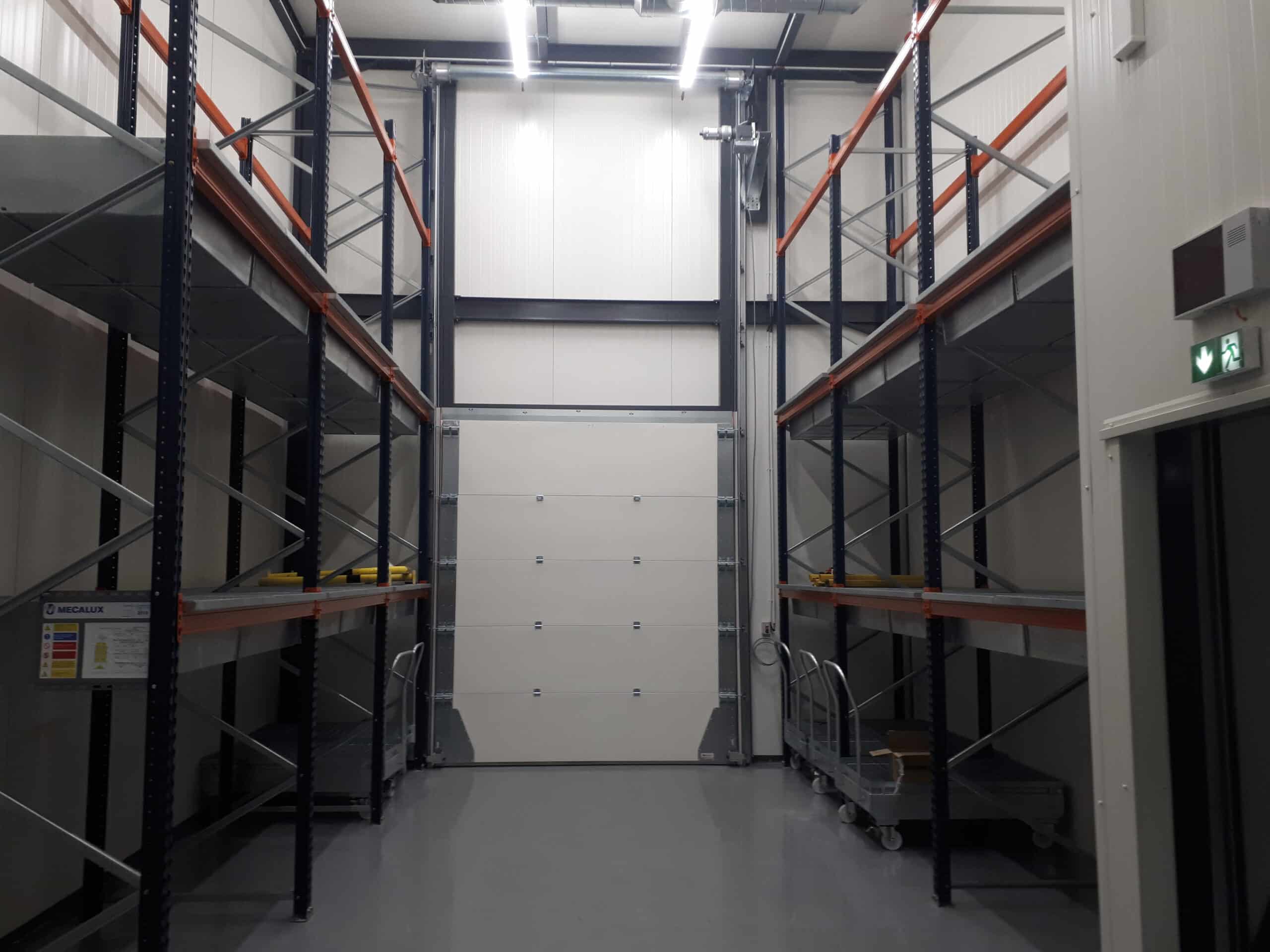 La porte sectionnelle permet de créer une fermeture ignifugée entre deux espaces et convient à la fois pour l’intérieur que l’extérieur. Cette porte coupe-feu satisfait à toutes les normes européennes en matière de résistance au feu (EN 1634-1) et de sécurité (marquage CE). Elle dispose de la plus haute classification possible EI1.