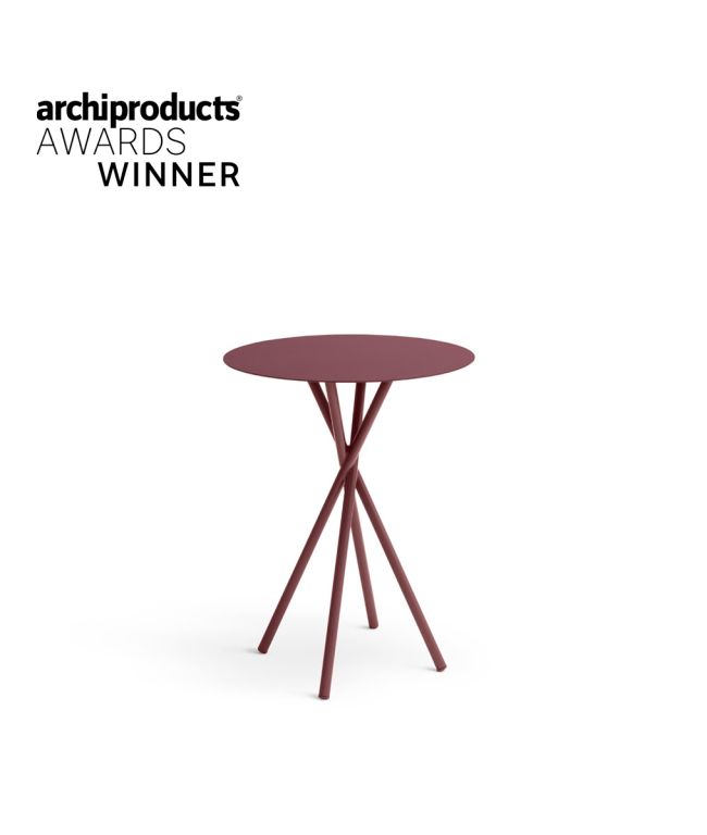 La table d’extérieur Coco est disponible en fer dans les coloris graphite ou syrah et, à la demande, dans la teinte sable.